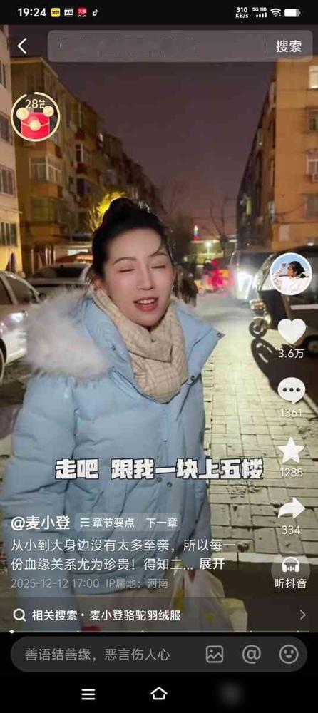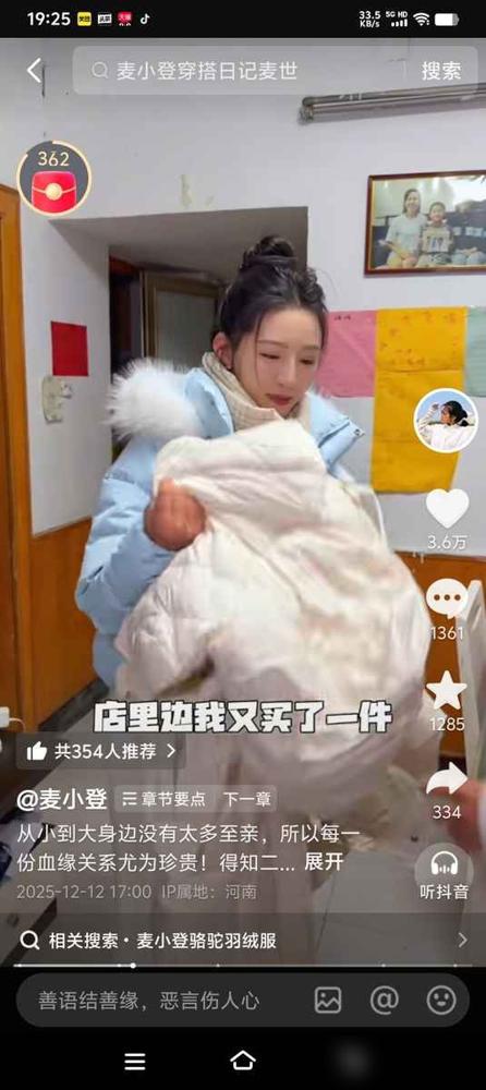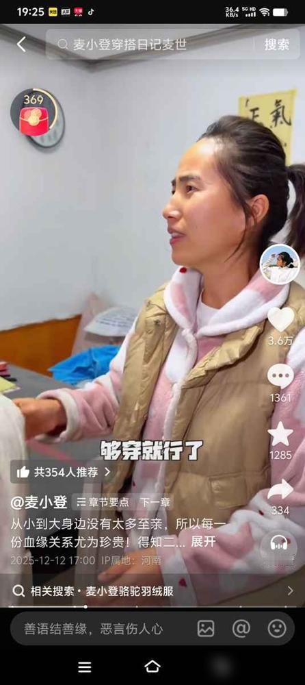 看哭了。就为了一件羽绒服。 麦小登自己有服装店,卖着羽绒服。 这事儿让我愣了半天。 一件羽绒服,来回折腾。自己店里明明有,非得掉头去别家买件新的。 很多人说她傻。 但傻得让人心里发酸。 麦小登是个网红。平时拍点农村生活,卖卖衣服。 这次去看二姐,估计是临时起意。从自己店里拿件羽绒服,多方便啊。 可一听姐姐已经有了,她立马掉头。 注意,不是回家拿别的,是去别人店里买。 这操作,细品。 网上都说这是真情,演不来。 没错。演的话,拍到“已经送过一件”就可以停了。足够温情。 但她偏偏多此一举。 这“一举”,恰恰戳中了现代人心里最软的那块肉。 我们多久没这样“多此一举”过了? 现在的人,太“聪明”了。 送礼首先想的是性价比,是对方需不需要。 送重复了?那正好,省了。 这种计算没毛病,很高效。 但感情,最怕的就是这种“高效”。 麦小登的“低效”,反而显得珍贵。 她这不是简单的惦记。 是一种刻进骨子里的“不将就”。 给自己亲姐的,不能是顺手带的“库存”。 必须是专门为你跑一趟、精挑细选的“礼物”。 哪怕两件东西一模一样。 意义天差地别。 这让我想起老一辈。 我奶奶那代人,走亲戚哪怕带把自家种的青菜,也得挑最好看的那几棵。 那不是青菜,是心意。 现在快递太方便,心意反而被稀释了。 点个手机,礼物送到。方便是方便,总感觉少了点温度。 有人说她这是作秀。 可能吧。但如果是秀,我宁愿多看这种秀。 这比那些炫富、炒作的秀,高级一万倍。 它秀的是中国人最看重的东西:人情味。 这种东西快没了,所以才显得扎眼。 我们总说真心。 可真心是有成本的。不仅是钱,更是心思、时间和那股“不怕麻烦”的劲儿。 麦小登的成本,就是那多跑的路、多花的钱,和那份“不将就”。 现代人最缺的就是这个。 怕麻烦。怕付出没回报。怕真心被辜负。 算来算去,把感情也算淡了。 别光问谁对你能否这样。 也问问自己,你对谁还能这样? 对父母?对爱人?对真朋友? 还是说,所有的关系都变成了微信里的点赞和群发祝福? 一件羽绒服,照出了多少人的敷衍。 这不是道德绑架。 非让你学她那样掉头买新的。 而是提醒我们,在计算和效率之外,给真情留一点“笨拙”的空间。 那份“笨拙”,才是关系的压舱石。 时代跑得快。 但有些东西,得慢下来,得“浪费”一点,才显得郑重。 这份郑重,才是对抗人情冷漠的最后防线。 麦小登这件羽绒服,暖的不只是她二姐的身子。 更暖了看客的心。 它让我们相信,真心还没死透。 这就够了。 MCN双量进阶计划