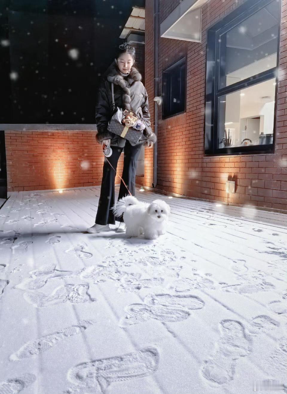 刘亦菲晒初雪哈哈合照初雪赴约,温柔定格~刘亦菲晒初雪与哈哈的合照!这合照的可爱浓度超标了!神仙姐姐和她的“小狗保镖”一起出镜新娱