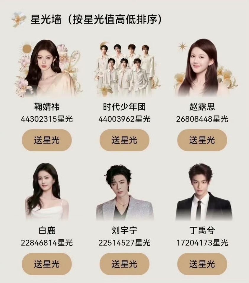 笑不活!星光大赏“抽水机”开足马力,前六顶流要集体“裸考”了? 星光大赏这波操作玩挺大!各家粉丝喊着去水,鹅厂直接官宣“清水分”,这下谁的水分藏不住了? 现在前六鞠婧祎、时代少年团、赵露思、白鹿、刘宇宁、丁禹兮稳坐前排,可去水后排名怕是要大洗牌~ 是真顶流稳如泰山,还是“水票选手”原形毕露?这场“脱水大考”比颁奖还刺激,蹲一个真实人气揭晓!