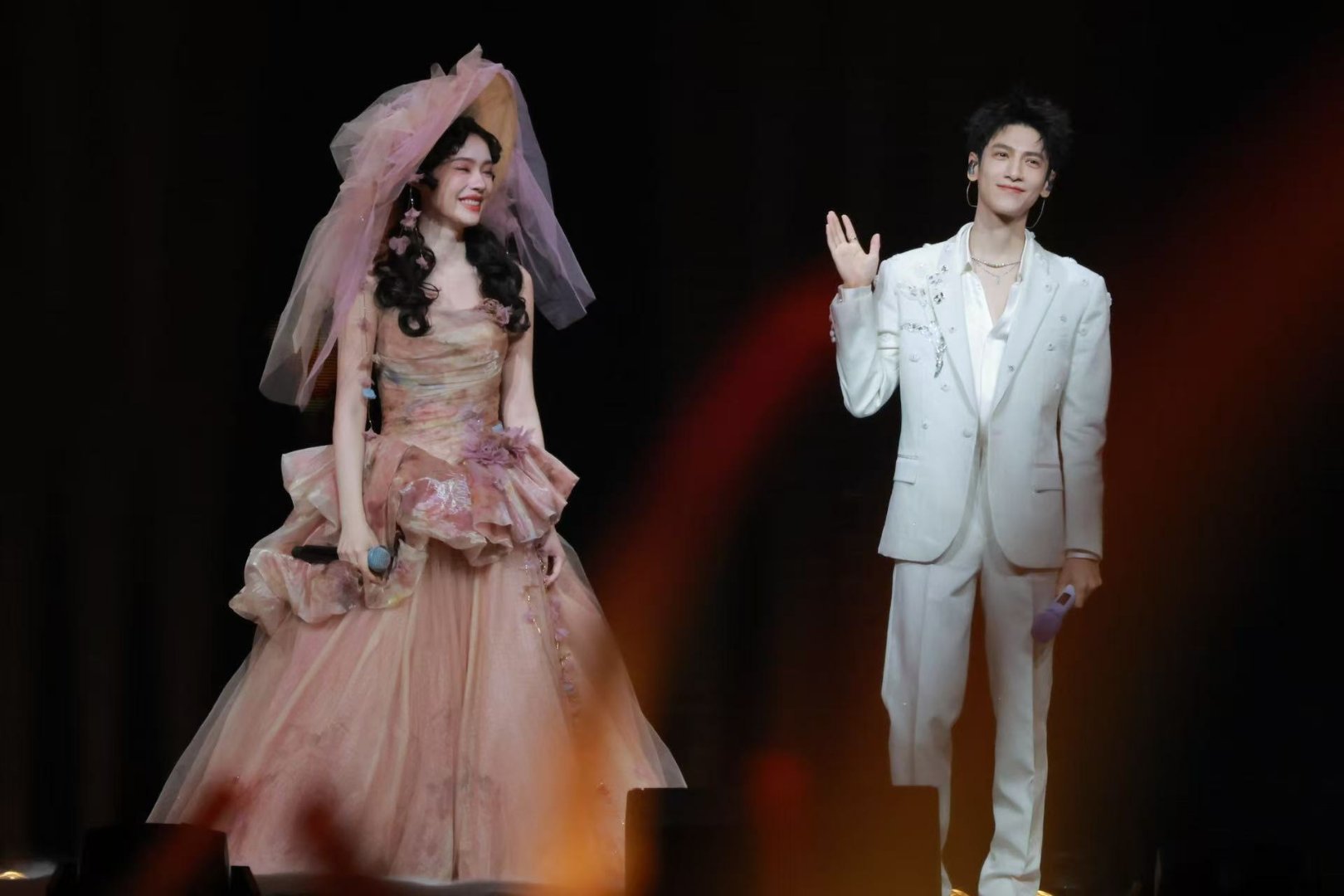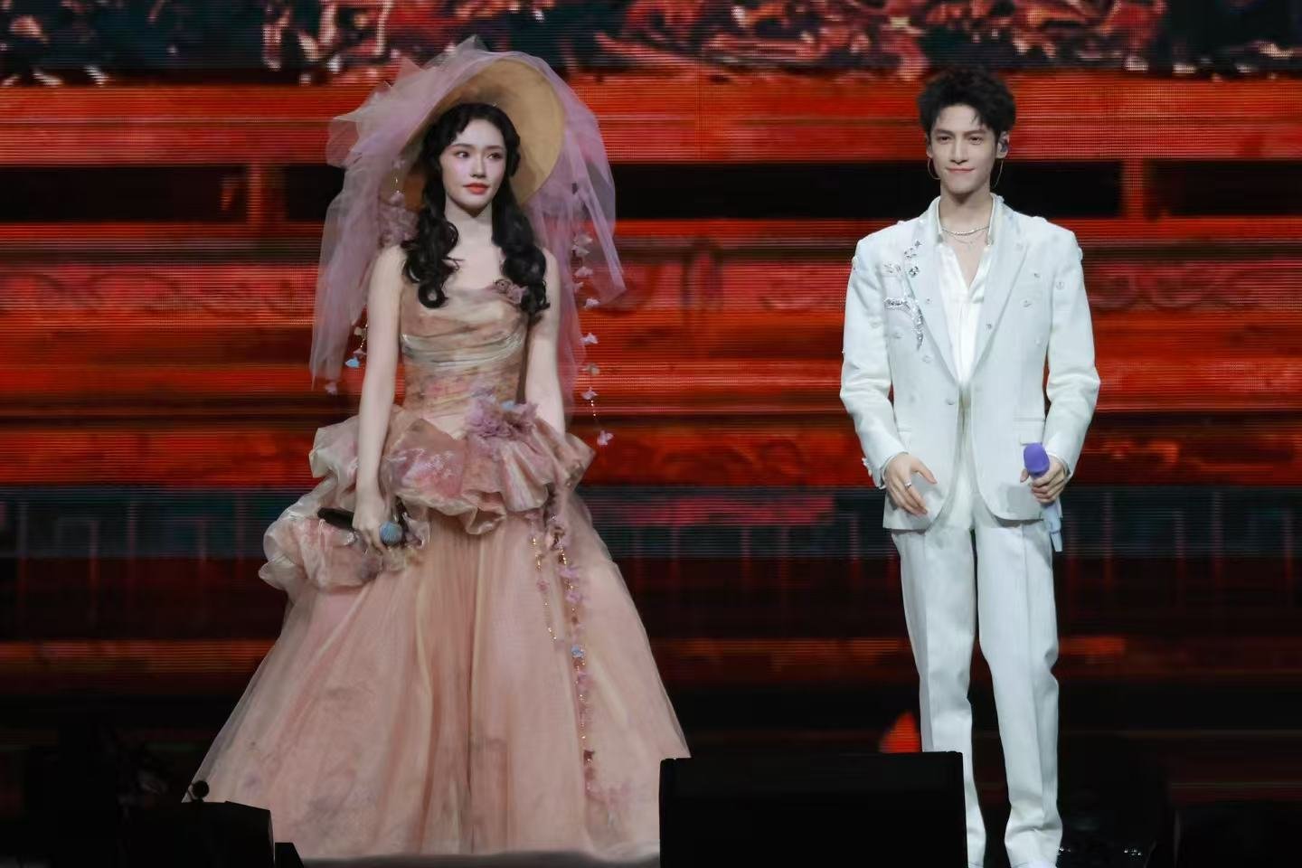 林允罗云熙舞台像童话画面 粉色纱裙翩跹,白色西装清雅,林允与罗云熙的舞台同框如诗如画。这童话般的画面,让人瞬间坠入浪漫的梦幻世界
