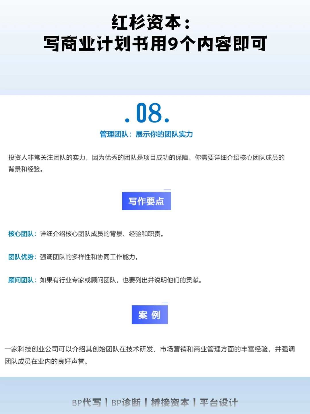 4. 组织结构和管理团队:描述公司的组织结构和管理团队的背景、经验和他们如何带领公司成功