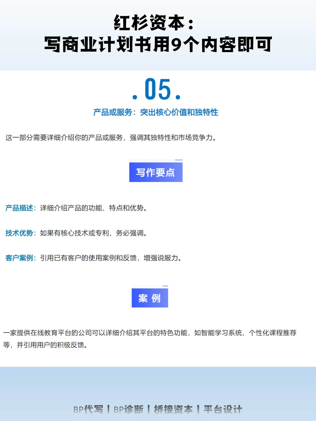 5. 产品或服务:详细说明公司提供的产品或服务,包括技术、创新点、生命周期和研发情况