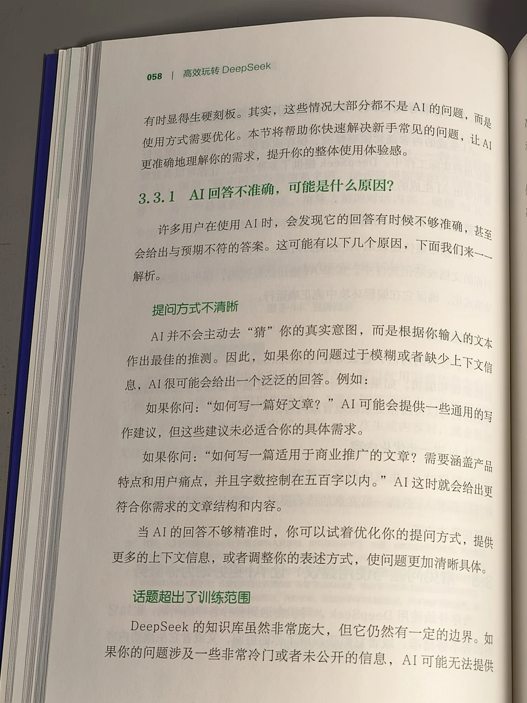 读书思考:人人都在用DeepSeek,可是每个人对它发出不同的指令,得到的结果却不一样,再一次证明抓紧学习DeepSeek的必要性。