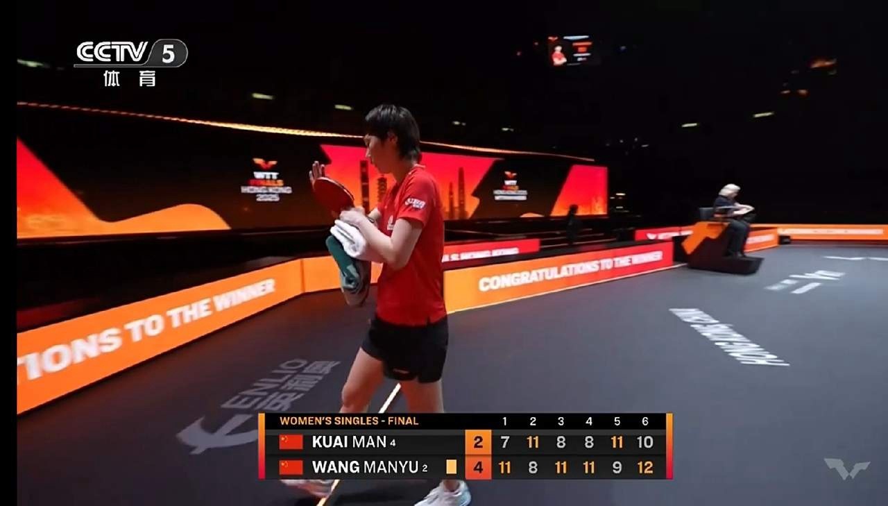 王曼昱4:2战胜了蒯曼,卫冕了总决赛冠军🏆决赛正在进行中,曼昱对战蒯曼,这次的总决赛,蒯曼涨球明显,昨天制衡了莎莎,今天对曼昱又是一番冲击,两个你追我赶,毫不松懈,一比一平,比赛来到了第三局,曼昱暂时领先,但蒯曼瞄准时机,快速追了上来,可是曼昱毕竟是实力选手,11:8还是拿下了第三局,今天的现场可以说是分外吵闹,曼昱粉丝居多,蒯曼粉丝也不少,给人一种吵架的感觉,曼昱稳步领先,蒯曼也毫不示弱,奋起直追,最终4:2曼昱拿下了比赛!今天的决赛蛮满精彩的,恭喜曼昱荣获冠军,蒯曼亚军!