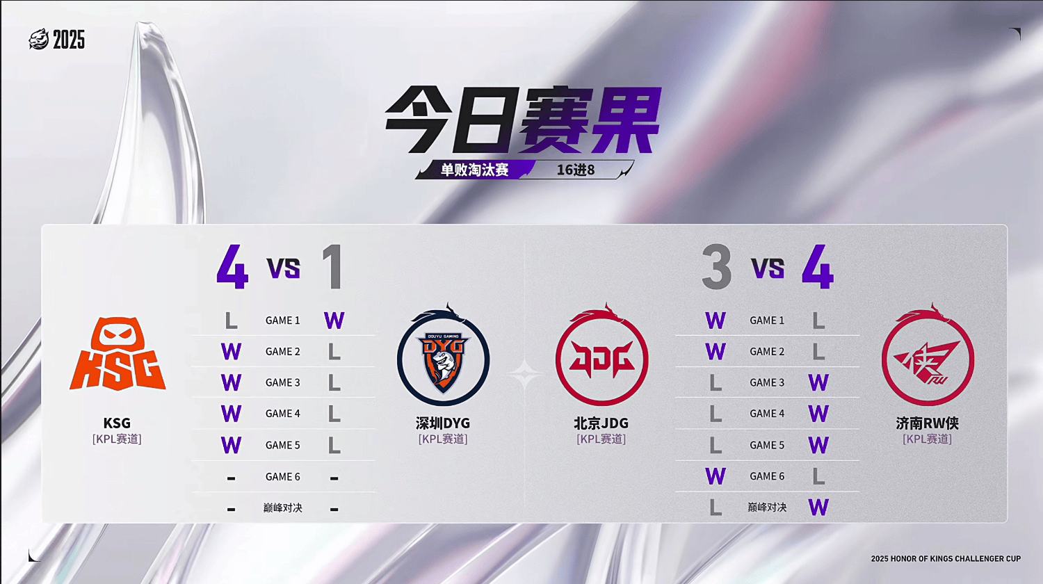 恭喜KSG、济南RW侠晋级2025王者荣耀挑战者杯八强!