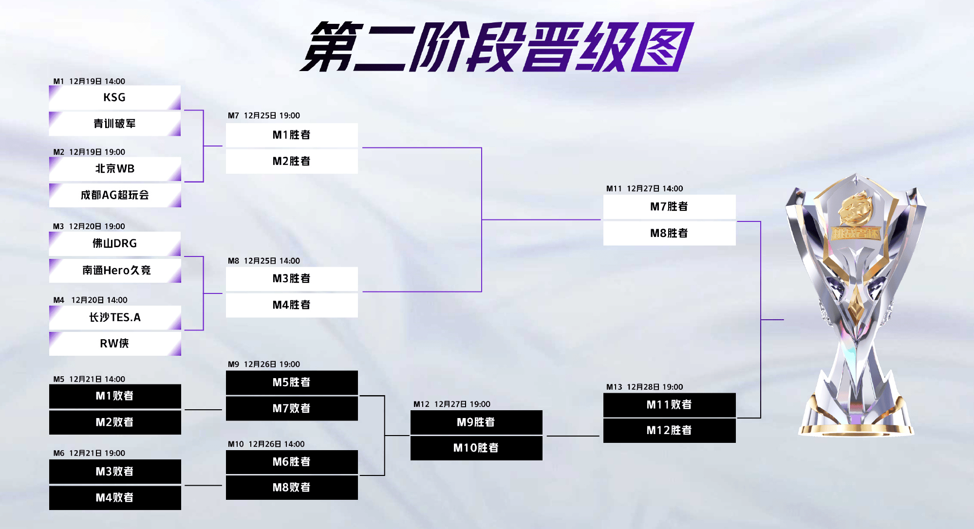 第二阶段晋级图见图三,12月19日,两场BO7双败淘汰赛精彩继续!我们不见不散