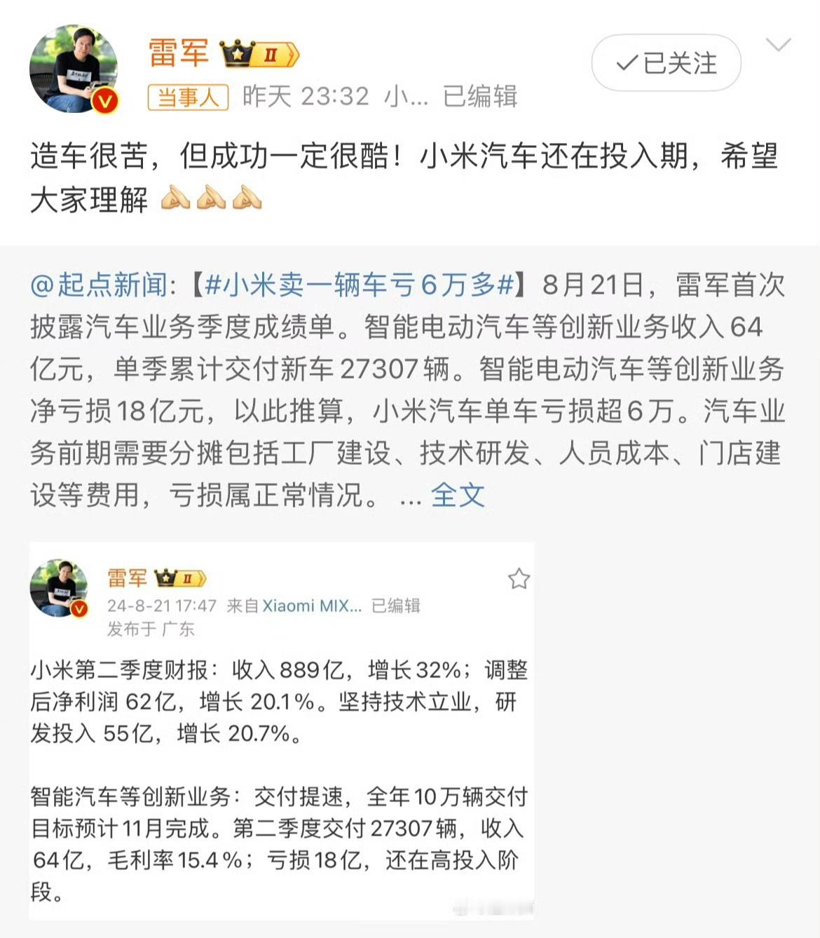 近日,国家市场监督管理总局发布《汽车行业价格行为合规指南(征求意见稿)》,其中明确禁止车企“亏本卖车”。根据新规,除非依法降价处理积压商品,车企不得以其他方式使出厂价低于生产成本,同时要求明码标价,显著标示车辆配置、价格、促销信息等。国家发文禁止亏本卖车满谈汽车此前,不少车企高管在宣传中频繁提及“卖一辆亏一辆”,小米汽车曾被曝出每辆车亏损6万元 ,极越、蔚来、小鹏等新势力也普遍存在单车亏损现象。事实上,车企所谓的“亏损卖车”是一种营销话术,字面解读易理解为亏钱、赔钱卖车,造车讲究规模效应,前期属于投入期,如建厂、研发、人工等沉默成本,短期摊销下必然是亏损,单车亏损需要车企长期良性发展,才能逐渐收窄,才能有边际成本低的优势。在行业深耕多年的车企,相较于造车新势力,靠着规模效应,可以有更主动的定价权,如果一味降价促销,虽然在短期内吸引了流量和订单,但也会引发行业内的恶性价格战,导致整个产业链承压。此次政策出台,标志着监管部门开始从制度层面遏制“内卷式”竞争,推动车企回归理性定价和长期主义发展路径。目前,比亚迪、小鹏、北汽等车企已公开响应,表示将严格遵守新规,完善价格合规体系。国家发文禁止亏本卖车