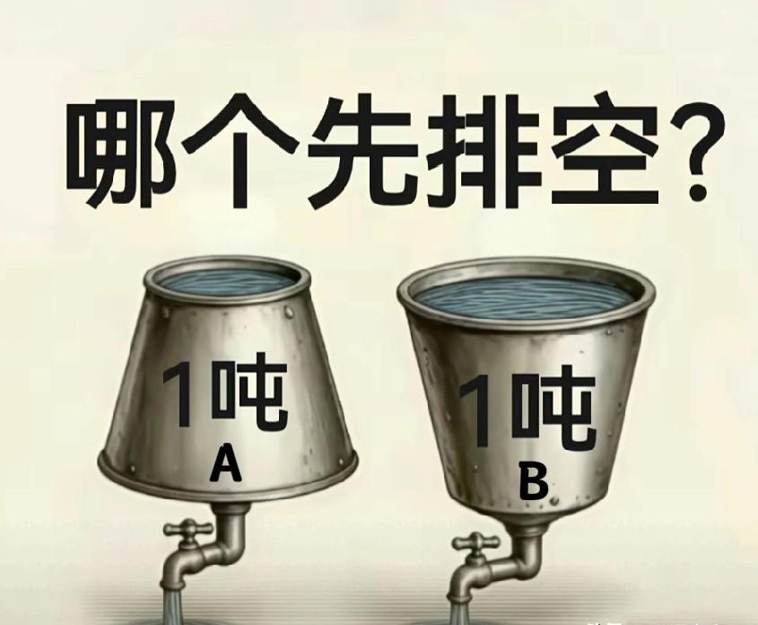你以为深水桶排水更快? 实验颠覆认知:两个1吨水容器,同时开相同水龙头,**浅盘竟比深桶先空**。 不是水量决定速度,是水面下降速度。 排水口压力看水柱高度,但横截面积才是关键——浅盘水面每降1厘米,流失的水量比深桶多三倍。 就像用吸管喝奶茶,杯口越宽,液面下降越明显。 托里拆利定律说流速与高度的平方根正比,但流量还要乘以横截面积。 深桶初期水流猛,可水面下降慢;浅盘压力小却稳定输出,总时间反而更短。 厨房洗菜池和矿泉水瓶同时放水,你猜哪个先见底? 这就像人生赛道——起步冲得猛,不如持续输出稳定。 那些看似深厚的积累,有时会因结构臃肿而流失效率。 赢的不是水深,是水面下降的速度。