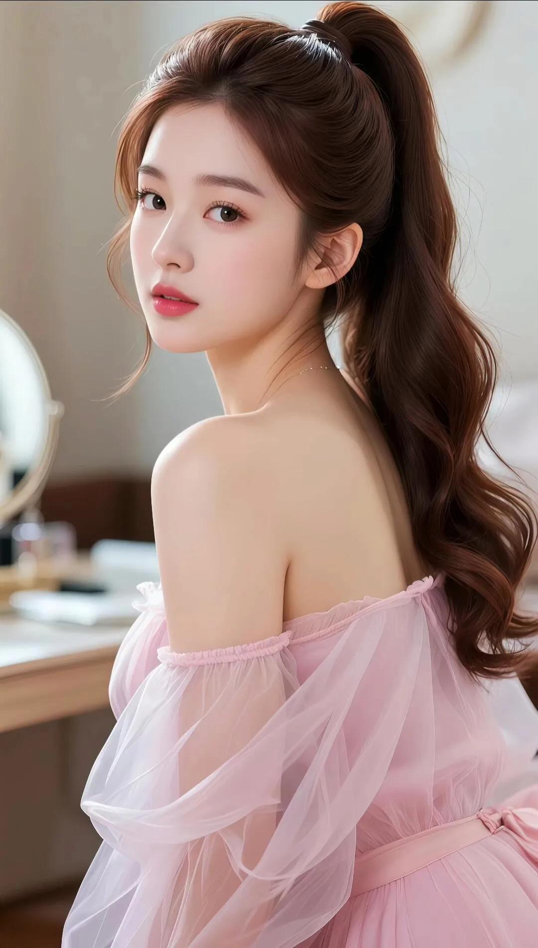 粉色纱裙被月光染成诗,露肩的温柔藏不住心跳。等风也等你——今晚的想念,要不要让它飘进你梦里? 想你的夜 清纯女神 气质美女
