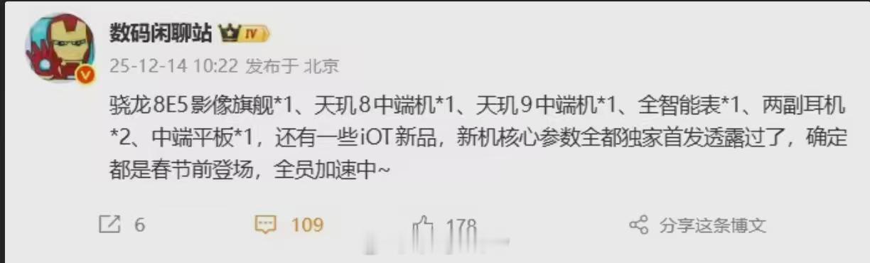 小米将于春节前密集发布多款新产品,涵盖影像旗舰、中端性能机、全智能手表及IoT生态新品,核心参数和发布时间均获关键曝光。