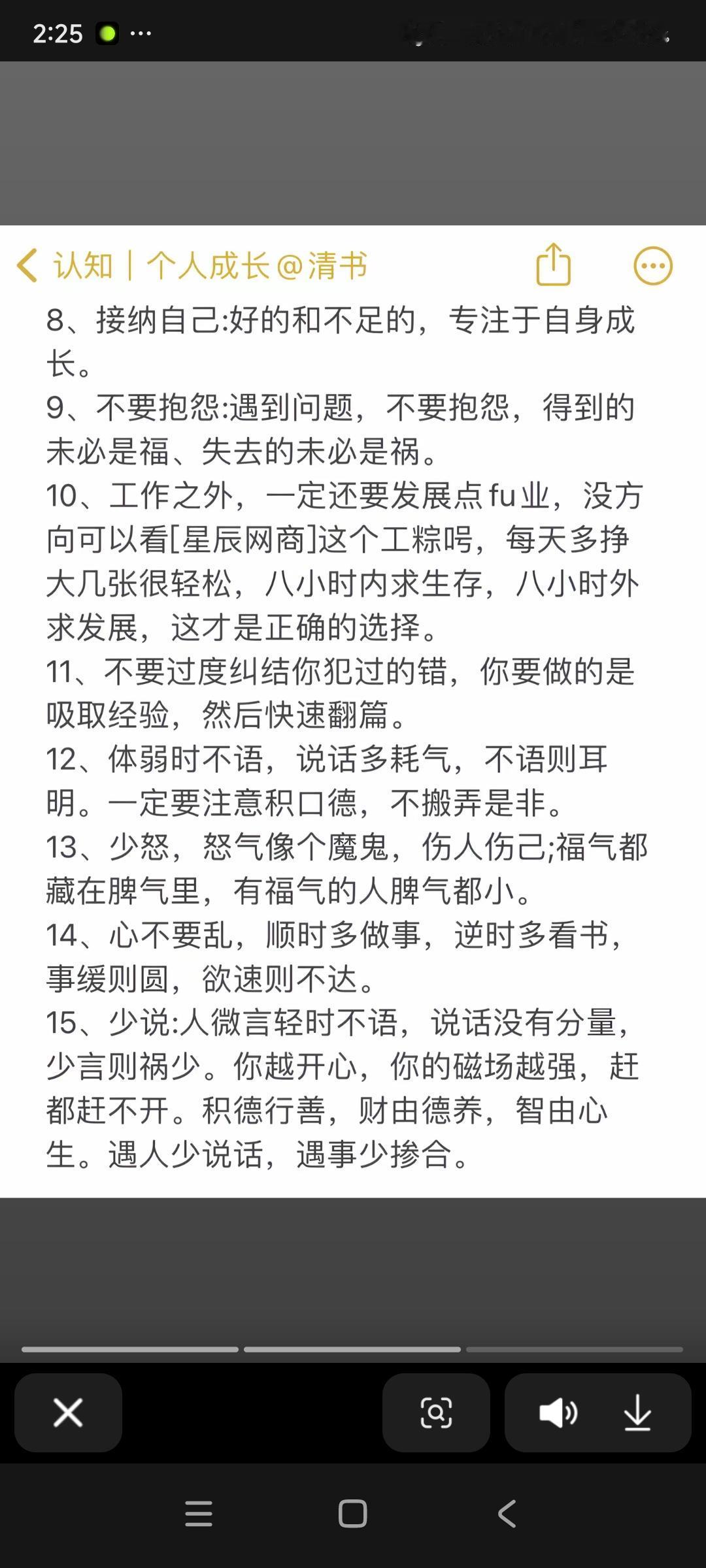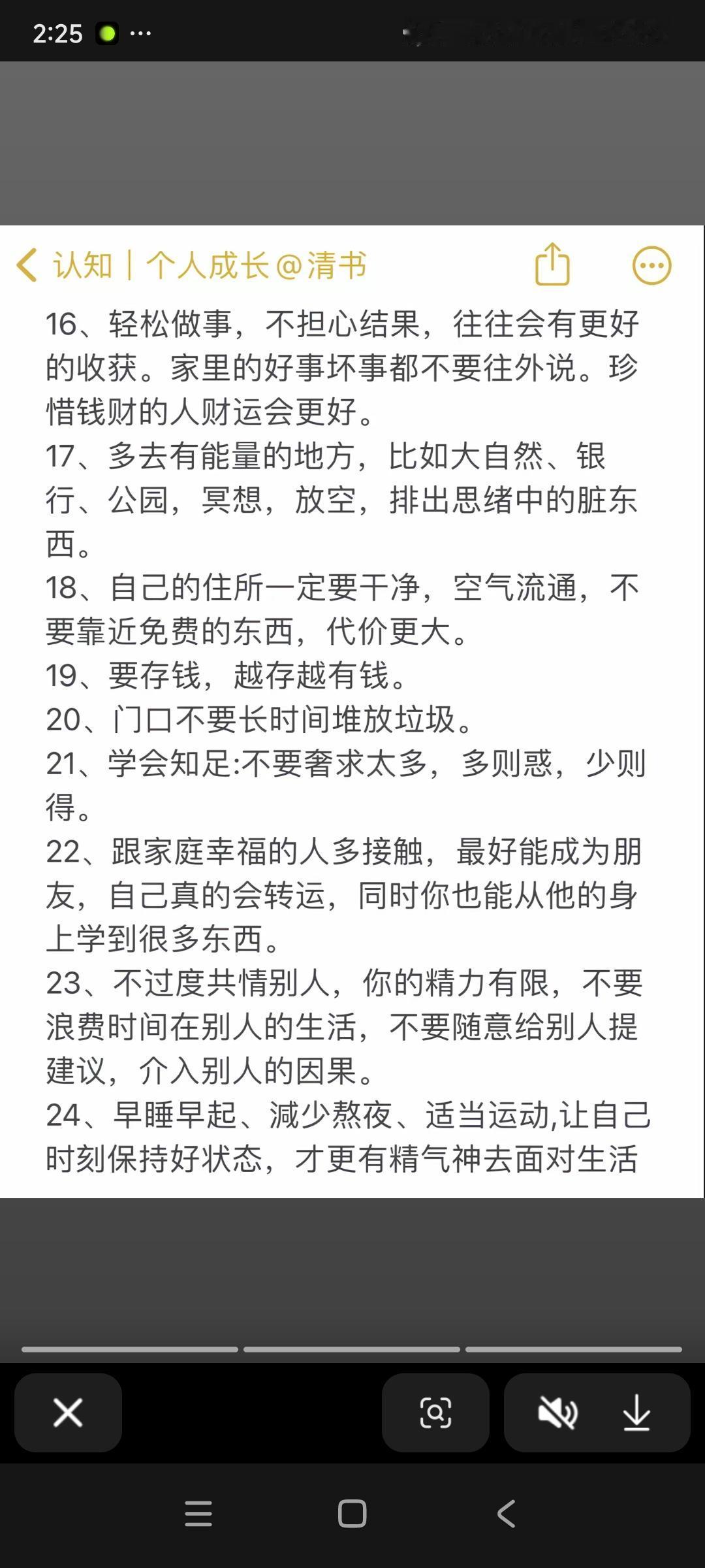 旺自己这事不是玄学,真有道理。分享七条让你“顺”起来的法则,不必多琢磨,去做便是。 相由心生境随心转 施恩不悔 你本性就良善。 每一次相遇,不是恩赐就是渡劫 就当是种子撒在了风里 不必回头看它落在哪片土。 事缓则圆 时间自有答案 与己和解,接纳自己 别跟过去较劲断离舍 放过自己,世界才给你让路。 淡交独处 与人太近易浊,太远则枯。 独处清净,养人心 平安是福 闲言碎语随风过, 自己的屋檐自己修 看开是福 万事看轻淡。 拿下我我执念 自成方圆* 不依附,不恐慌,不解释。 把自己圆,自有力量滚过一切坎坷,也自有圆心稳住所有动荡。 顺与不顺而 在你眉宇间的那一寸开阔, 和心头的那一把尺度。