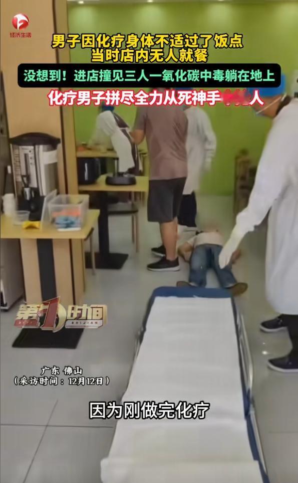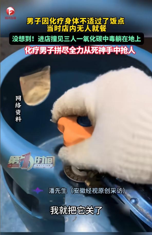 “不幸中的万幸!”12月12日报道,广东佛山,一男子刚做完化疗,因为身体不舒服错过了饭点,他随便走进一家店,发现里面竟然有3个人中毒晕倒,他立马关上煤气阀门,打开门窗,用虚弱的身体将3人拖到通风处,并立即报警,网友:好人会有好报![熊猫] 佛山街边一家小餐馆静悄悄的,早已过了午饭时间,潘先生因为刚做完化疗,身体感到难受,所以出门吃饭的时间比平常晚了很多。 他走进街边一家小餐馆,推开玻璃门,发现大厅里躺着两个人,没有动静,他继续往里走,看到厨房地上还倒着一个人。 店里能闻到明显的煤气味,旁边摆着三个煤气罐,最里面那个的阀门没有关紧,气体正在泄漏,潘先生当时自己还很虚弱,身体上的不适感持续不断,但他没有耽搁,立刻上前关紧了煤气阀门,然后迅速把店里所有的门窗都打开通风。 他深吸了几口室外流进来的空气,开始动手把人往外转移,潘先生一个人,费力地将三个失去意识的人,逐个从室内拖到了门外通风的地方。 这个过程里,他自己也感到头晕,但没有停下,等到三个人都被安置妥当,他才拿出手机拨打了报警电话。 救护车和民警随后到达现场,三名一氧化碳中毒者被送往医院救治,因为现场处置及时,送医迅速,三个人后来都脱离了生命危险,医护人员表示,如果再晚一些发现,情况可能会非常危险。 事后回想,一切都巧合得像电影,潘先生因为治疗耽误了吃饭,偏偏走进了那家店,平时正是忙的时候,那天午后却刚好没人,但与其说是巧合,不如说是那份刻在骨子里的善意,抓住了转瞬即逝的生机。 秋冬季节是燃气安全事故的易发期,门窗长时间紧闭,如果发生燃气泄漏,短时间内就可能导致人员中毒。 如果遇到类似情况,首先打开门窗,保证通风,然后关闭燃气阀门,接着将中毒人员转移到空气流通的安全区域,同时尽快拨打急救电话,需要特别注意,在现场不要开关任何电器,防止产生电火花。 定期检查家中的燃气灶具、热水器连接管和阀门,使用燃气时注意保持厨房通风,这些安全习惯非常重要,一次及时的援助,避免了严重的后果,这次事件也再次提醒公众关注燃气安全。 下面我来分享几条网友的评论,咱们一起来瞧瞧大家是怎么说的。 这大哥自己都在最难的时候,还拼命去救别人,真是从心底里佩服,善良真的不分时候。 看了心里一暖又一酸,他自己刚化疗完该多虚弱啊,那一下得使出多大的劲儿,希望他以后一切都好,好人必须平安! 所以说关键时刻能挺身而出的,往往就是普通人,哪有什么超能力,就是一份不忍心的本能。 冬天了,用气用炭千万要小心,这次真是运气好碰上这位潘先生,不然后果不敢想,给所有人提了个醒。 这个“错过饭点”太关键了,有时候生活中的一些“小意外”,可能就是别人命运的“大转折”,想想真神奇。 看得我眼眶有点热,这就是我们中国人骨子里的仁义吧,自己再难,见人有危难也绝不会袖手旁观。 希望那三位被救的店家能好好感谢恩人,也希望大家都能学学这种急救常识,关键时候能救命。 平凡人的英雄时刻,他推开门的那一刻,就是三个家庭的救星,致敬这份勇敢和果断。 那么对于这件事情,您有什么想说的呢? 信息来源:AHTV第一时间