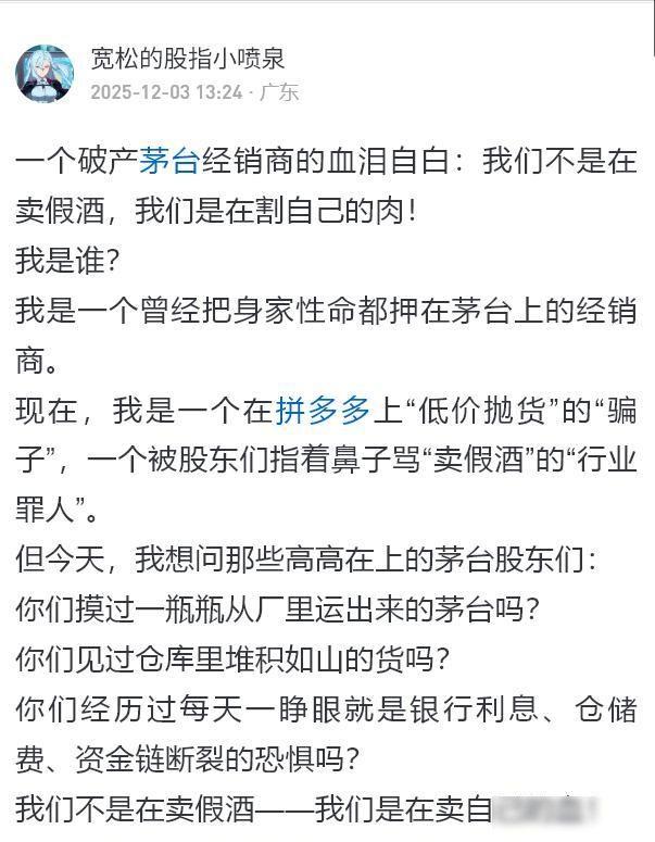 茅台也玩“二选一”?拼多多、山姆“神仙打架”,消费者懵了! 最近拼多多上有人卖飞天茅台,标价1399元,这价格比官方指导价还低,很多人第一反应是假酒,可真有消费者买了,扫码、NFC、物流都对得上,确实是真货,但大家还是不信,不是检验技术不过关,而是心里那道坎过不去,买瓶酒图的是安心,不是图便宜。 有个经销商自己说出实情,他说一瓶茅台进货成本超过两千块,在拼多多上只能卖一千三百九十九,每瓶要亏掉几百块钱,他不是故意骗人,实在是撑不下去了,仓库里压着货,利息天天在涨,不卖掉就得关门大吉,这跟道德没关系,纯粹是为了活下去,市场逼着他们赔钱清仓,谁都没办法。 另一边山姆会员店的茅台卖1499到1900元,比别的平台贵很多,照样卖得很好,去年光山姆就卖出12万瓶,赚了1.8亿,有人觉得是用礼品卡买的,但仔细一算根本对不上,消费者明知价格高,还是愿意掏钱,不是因为他们傻,是怕买到假货。 拼多多平台上的真货难以获得信任,山姆会员店的高价商品反而更受欢迎,这主要源于两者信任机制的不同,拼多多的商家自行上架商品,平台仅进行简单审核,但假货问题频发,消费者已经形成负面印象,例如西安晚报报道过菏泽一家烟酒店销售五万瓶假五粮液,央视也曾曝光电商平台伪造质检报告售卖假奶粉,在这种情况下,即使消费者扫描验证码显示为真品,心里仍然充满疑虑。 山姆就不一样,它实行会员制度,直接跟品牌方签合同,商品优先供应,厂家不敢乱来,因为一旦出事,就会损失长期合作,消费者买的不是一瓶酒,而是整个系统的保障,不用每瓶都检查,从源头到货架都有规矩管着,这种信任是拼出来的,不是刷出来的。 茅台这种酒,现在主要不是用来喝的,它在饭桌上摆着,代表的是面子,也代表着信用,如果让客人发现是假酒,轻一点会尴尬,严重的话可能失去客户,所以很多人愿意多花几百块钱,买一个“不会出问题”的版本,这不是在消费,而是在控制风险,酒的味道好不好不重要,重要的是没有人会怀疑你的人品。 这件事背后暴露出一个老问题,就是中国市场的信任基础比较薄弱,电商平台为了追求流量,对供应链的监管不够严格,路边烟酒店没有品牌保障,消费者很难分辨真假,而像山姆和Costco这类外资会员店,通过设置高门槛和强管控,把信任做成了自己的优势,这不是单纯靠价格就能解决的,而是整个系统的问题。 现在直播带货到处都能看到,私域团购也到处都是,消费者反而更加担心,因为AI换脸、伪造资质、刷单造假这些手段越来越厉害,大家不是不想省钱,是省不起这份心思,买一瓶茅台便宜几百块钱,其实是在为心理安全付钱,信任变得越来越少,也越来越贵。 我身边就有朋友,明明知道拼多多卖的是真酒,还是跑去山姆买,他说我不怕花钱,我怕别人觉得我小气,这话听着有点虚,但挺真实,在这个信息爆炸的时代,最值钱的不是商品本身,是你敢放心用它的那种感觉。