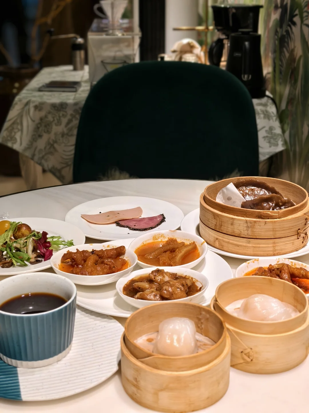 小吧台的饮料都是不另外收费的,窗边还可以围炉煮茶。早餐是早茶,开到11点,可以睡个懒觉再慢慢品尝,金钱肚和长白山蘑菇饺很好吃。早餐的咖啡吧的小姐姐很友善,还教我自己做了一杯手冲咖啡,体验了一把手磨咖啡豆。