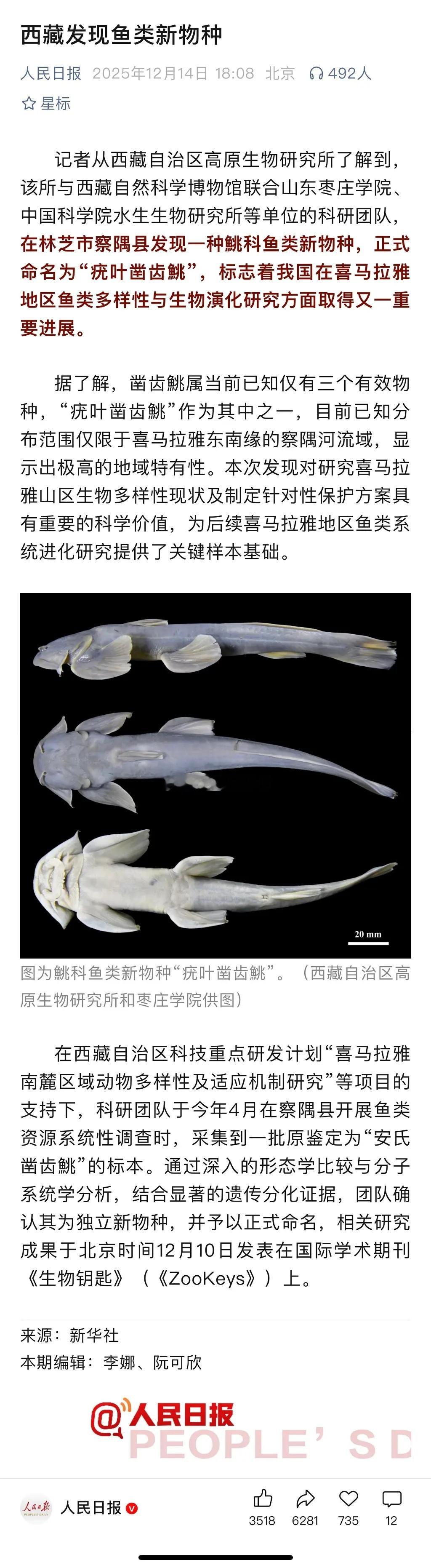 西藏发现鱼类新物种,长得好古老的样子~
