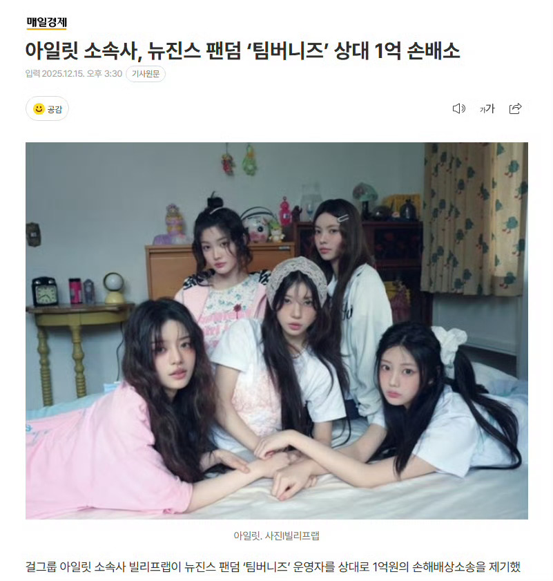 【新闻】ILLIT 所属公司向 NewJeans 粉丝团体“Team Bunnies”提起 1 亿韩元的损害赔偿诉讼ILLIT公司起诉NewJeans粉丝ILLIT公司向NewJeans粉丝索要赔偿