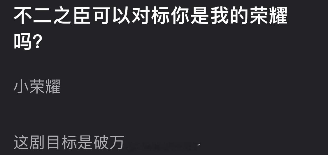 大家感觉敖瑞鹏的不二之臣可以对标你是我的荣耀吗?