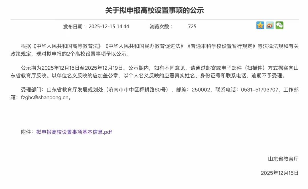 齐鲁中医药学院终于要来了! 祝贺烟台市,再添一所公办普通本科高校!作为一所地级市既有医药大学还有中医药学院,真算是可以了。 也衷心希望莱阳市能够留住齐鲁中医药学院莱阳校区,毕竟等着青岛农业大学海都学院搬走之后,最忧心的就是青岛农业大学莱阳校区成为空壳。还是给大莱阳留点年轻人吧。 同时也祝贺临沂市,虽然是民办的,但好歹也是一所本科高校。 估计这是2025年内山东省最后一次高校设置公示了,大家最期盼的那两所今年都没机会了。2026年再见吧。