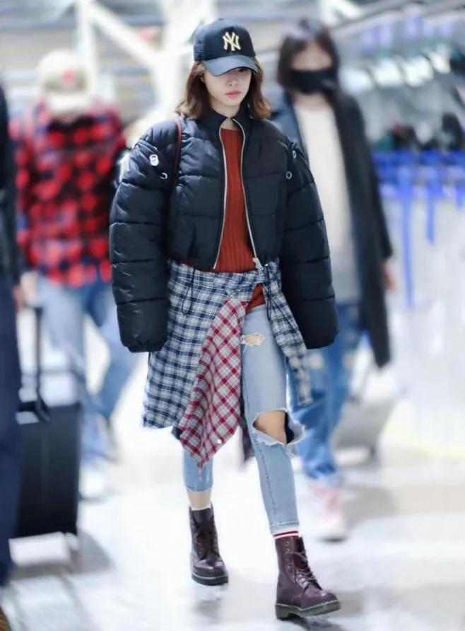 蔡依林齐肩发造型,气质反差感拉满 蔡依林这组机场造型太有看点了!齐肩发搭配棒球帽,一改往日的张扬风格,多了几分休闲酷感。黑色短款羽绒服内搭焦糖色针织衫,腰间系着格纹衬衫,配破洞牛仔裤和马丁靴,混搭风玩得超溜。 齐肩发让她的脸部线条更柔和,少了舞台上的霸气,多了街头的随性,这种风格转变也太让人惊喜了,果然时尚表现力一直在线!