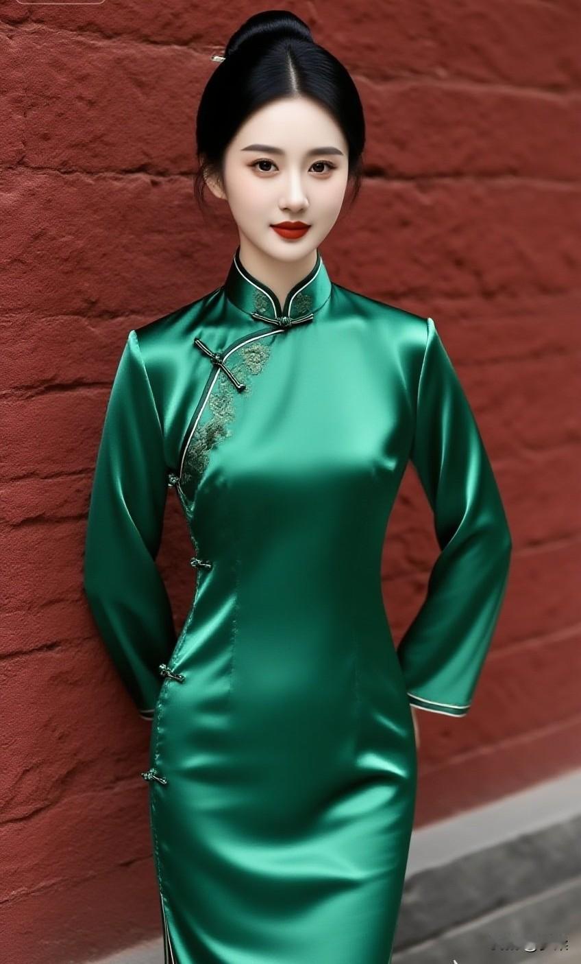 复古旗袍,优雅气质,红砖背景,惊艳一瞥江南风旗袍照 颜色鲜艳的旗袍