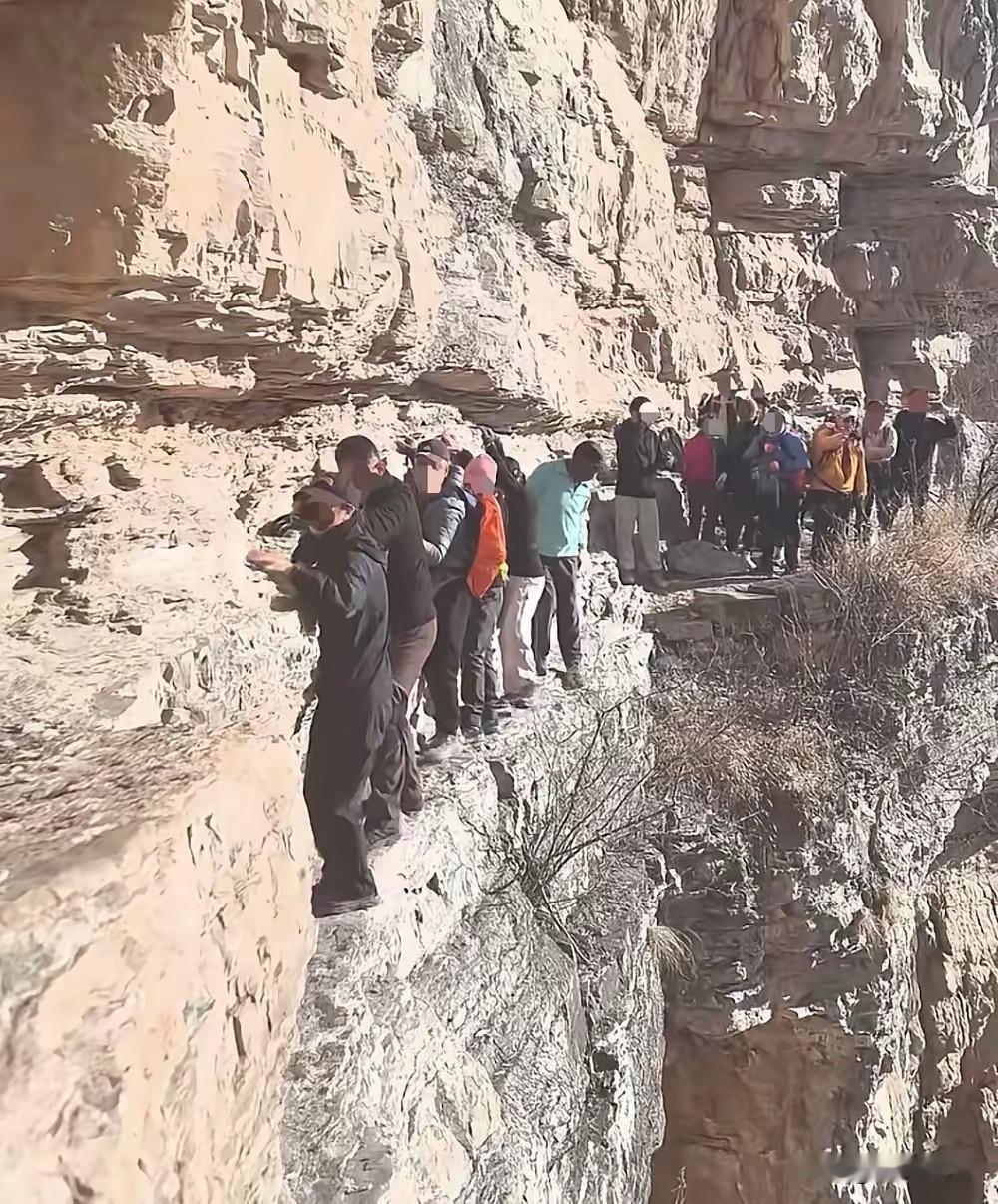 这些人简直是不要命了,在这么危险的地方,还想攀爬过去,也不知道他们的脑袋是怎么想的,看这石头的颜色,感觉都是风化的很严重,虽然看似很坚固,但其实不是很结实的,再看看这些人,岁数也都不小了,万一一个动作失误,后果都是不堪设想的,一言以蔽之,都是吃饱了没事撑的!