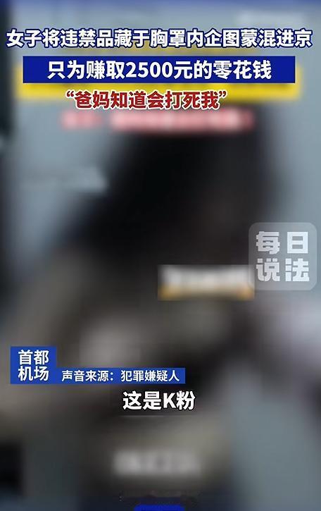 早知如此何必当初!北京一25岁女子进京时,被检测出胸部不对劲!一番检查后,果然在女子胸罩里发现猫腻,原来,女子为赚2500零花钱,竟然铤而走险,在自己胸罩里藏违禁品进京,她将面临刑事拘留,现场女子一个劲求饶:爸妈知道会打死我的! 进京安检口的队伍缓缓移动,谁也没料到,一个看着普通的年轻女子,竟藏着不小的猫腻。安检仪旁的工作人员眼神一扫,就觉出这女子不对劲,不是携带物品超标,而是她整个人的状态透着反常。 这女子25岁,已经离异,独自带着孩子过活。平日里全靠前夫给的一点生活费撑着,日子过得紧巴巴,买件日用品都要反复掂量。孩子正是要花钱的时候,吃喝拉撒外加偶尔的小病痛,哪一样都离不开钱。她没什么稳定工作,找的零活收入微薄,看着账本上的数字,急得整晚睡不着觉。 就在这时,有人跟她说,只要帮着带一批货到北京,就能拿到2500元。这笔钱对她来说,够给孩子买两身换季衣服,还能囤上一个月的奶粉,简直是雪中送炭。 她当时脑子一热,满脑子都是这笔钱能解决的难题,既没问清楚货物是什么,也没琢磨这事靠不靠谱,更没往违法那方面想,一口就答应了下来。 约定好的日子一到,她按照对方说的方式,把货物贴身藏在了胸罩里。一路上她提心吊胆,坐公交怕人碰着,走路不敢太快也不敢太慢,总觉得周围人的目光都在盯着自己。 到了北京某火车站进站时,这种紧张感达到了顶点,眼神不自觉地躲闪,脚步也变得僵硬,跟身边从容进站的旅客比起来,反差特别明显。 经验丰富的安检员一眼就注意到了她的异常,按照规定,安排了女性工作人员带她去一旁核查。这一查,果然查出了问题。工作人员在她的胸罩里,搜出了一个密封的塑料袋,袋子里装着好几个小纸包,里面的东西正是国家明令禁止携带和运输的违禁品。 看到东西被搜出来的那一刻,她的心理防线瞬间垮了。之前所有的侥幸和伪装都消失不见,当场就哭了起来,一五一十地交代了实情,说自己就是为了赚那2500元,才敢做这种事。 她一边哭一边反复念叨,说自己平时很老实,从来没做过违法的事,家里还有孩子要养,要是爸妈知道了这事,肯定会打死她。 可再怎么求饶也没用,违法的事实摆在眼前,没有任何挽回的余地。目前,她已经因为涉嫌非法携带、运输违禁品,被警方依法刑事拘留,这个案子还在进一步办理中。 本来是想赚点快钱贴补家用,没想到反而把自己送进了看守所,不仅没法照顾孩子,还留下了违法记录,一辈子都受影响。 这真是应了那句老话,君子爱财取之有道,歪门邪道的钱再诱人也不能碰,一步踏错,悔之晚矣。 信源:每日说法——中国农业电影电视中心每日说法官方抖音
