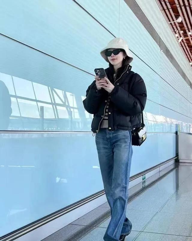 宋轶机场穿搭赢麻了!短羽绒+高腰牛仔秒变超模比例 宋轶这套机场look太会了!黑色短款羽绒搭配高腰牛仔裤,高腰线直接拉满视觉增高效果,再配上针织渔夫帽和墨镜,休闲又酷飒,小个子姐妹直接抄作业~