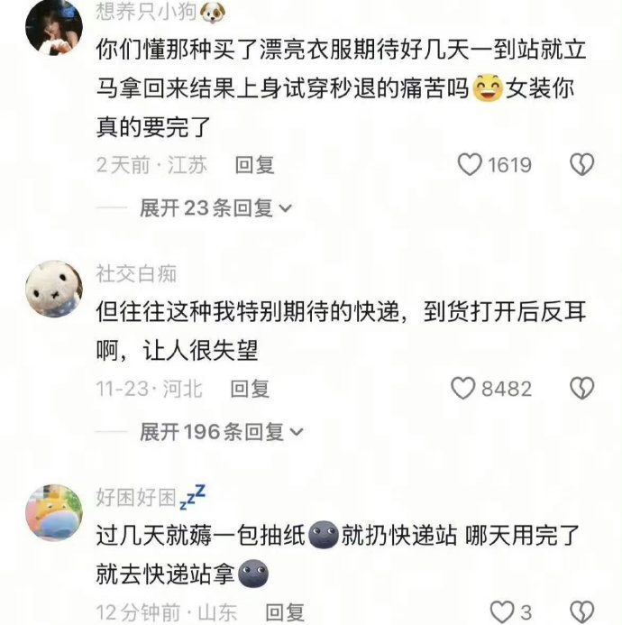 女生取快递,等级分:速递、特快、急送、闪送。🚚✨