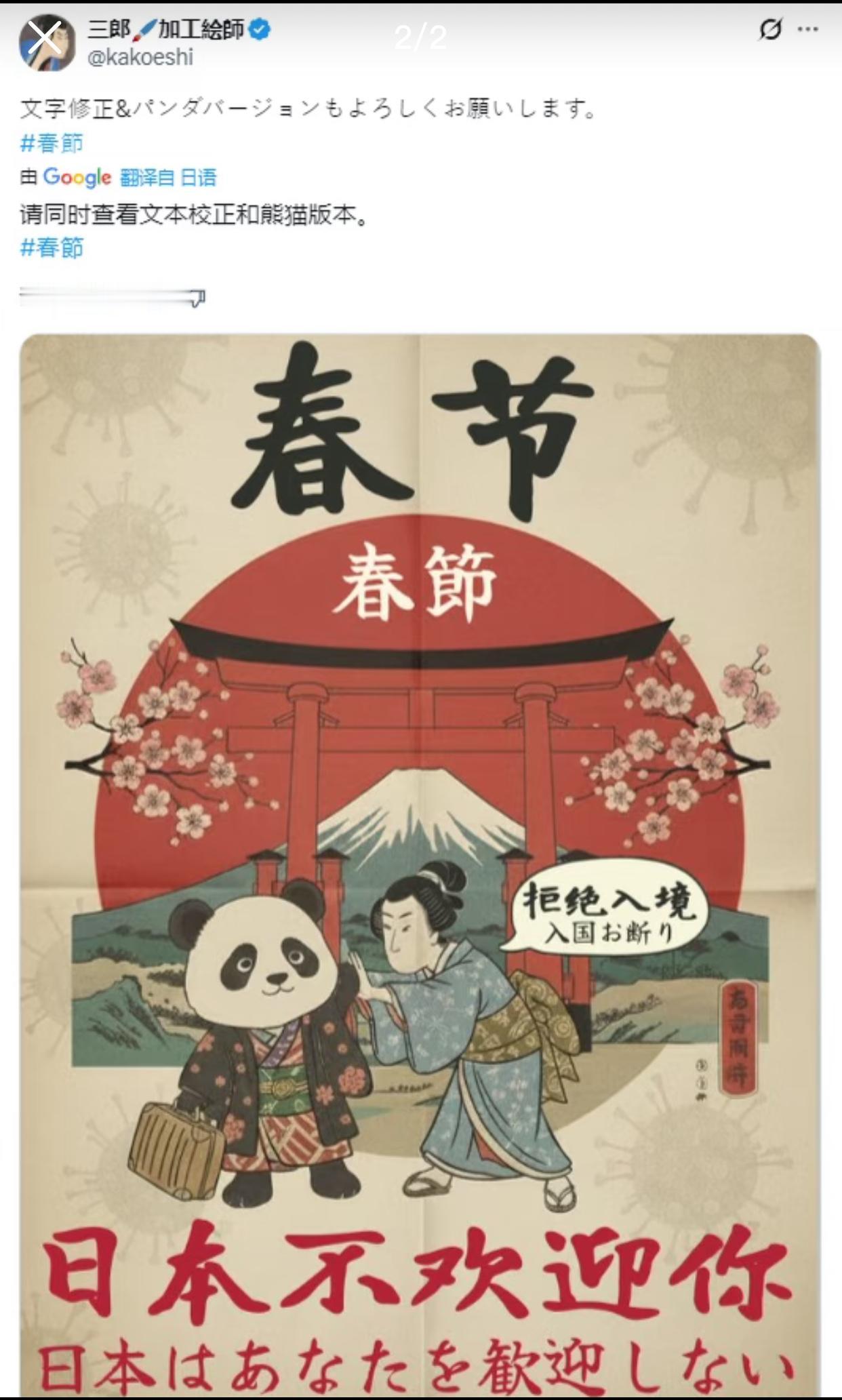 近日,一日本网民发帖说 让我们共同努力,阻止中国人在春节期间涌向日本! 现在或者以后还去的人,只能说一个愿打一个愿挨!对于正常人来说没什么影响,无所谓的,反倒是去那边过年,也不怕晦气!只有那些到现在为止还要舔着脸的继续去旅游的的人,一边挨着网友们的骂,一边遭到那边人的抵制!该~