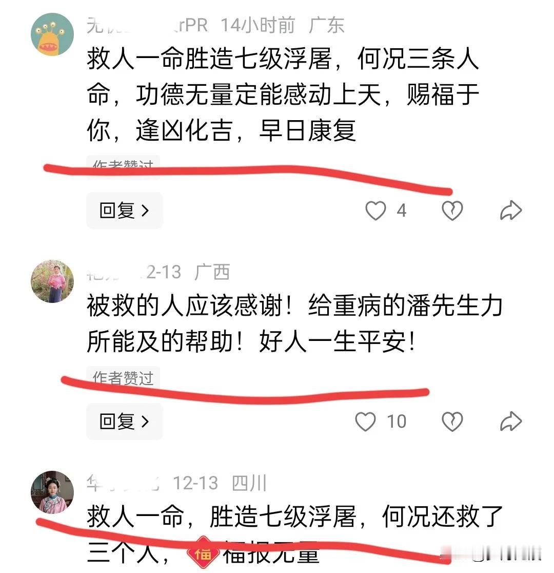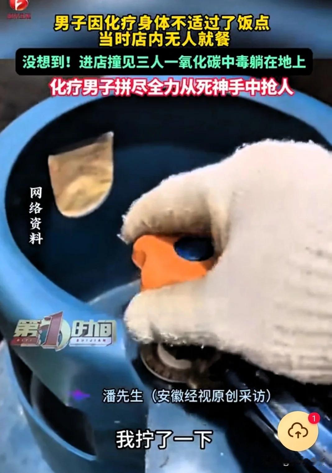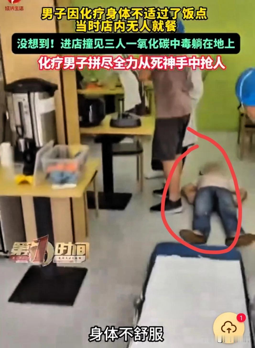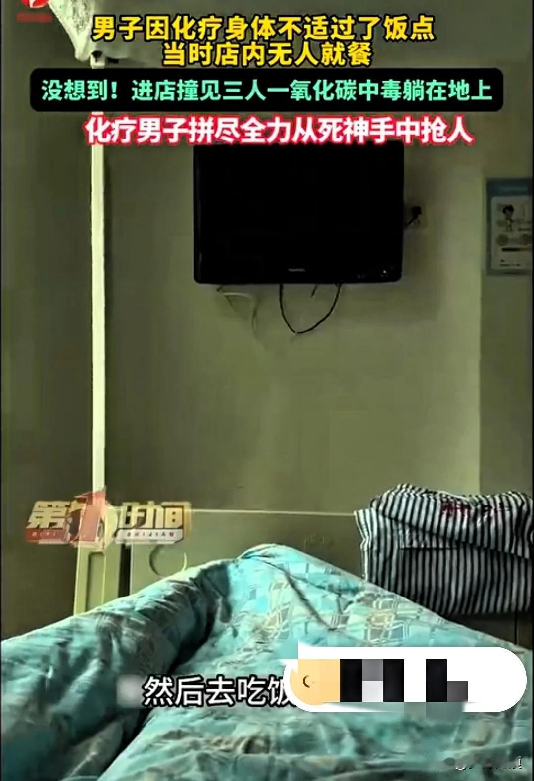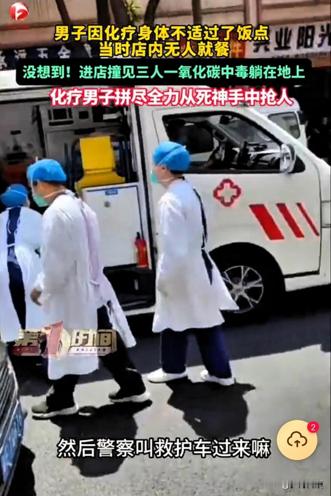 他的大福报应该能救他一命吧? 广东佛山。 男子是肝癌晚期患者,因化疗难受错过用餐时间,午后来到肠粉店,看到店内三人被泄露的煤气熏晕,拼尽全力将三人拖到店外。民警要送他去医院,他说不用麻烦了。我本身就在住院化疗。 善良勇敢的人应该得到善的回报。化疗病人特别虚弱,而且手脚无力,走路都会摔跤,拖重物都会拉伤那种脆弱,他是用命救的三人,真乃圣人也。 当地政府部门应该大力宣传重奖这位平凡的英雄,他重病在身,因病而经济拮据,希望各方都帮帮他,给他大力资助,也渡渡他的劫。