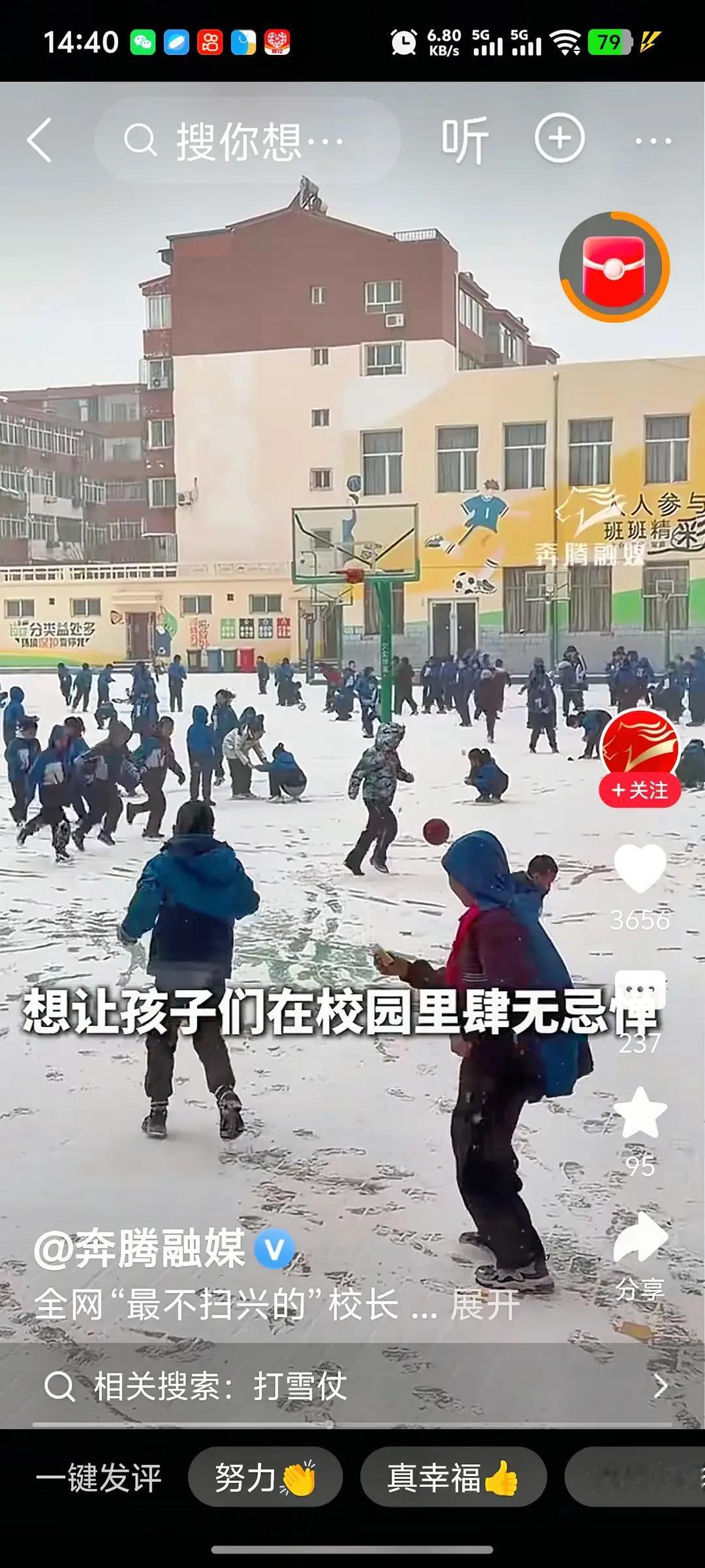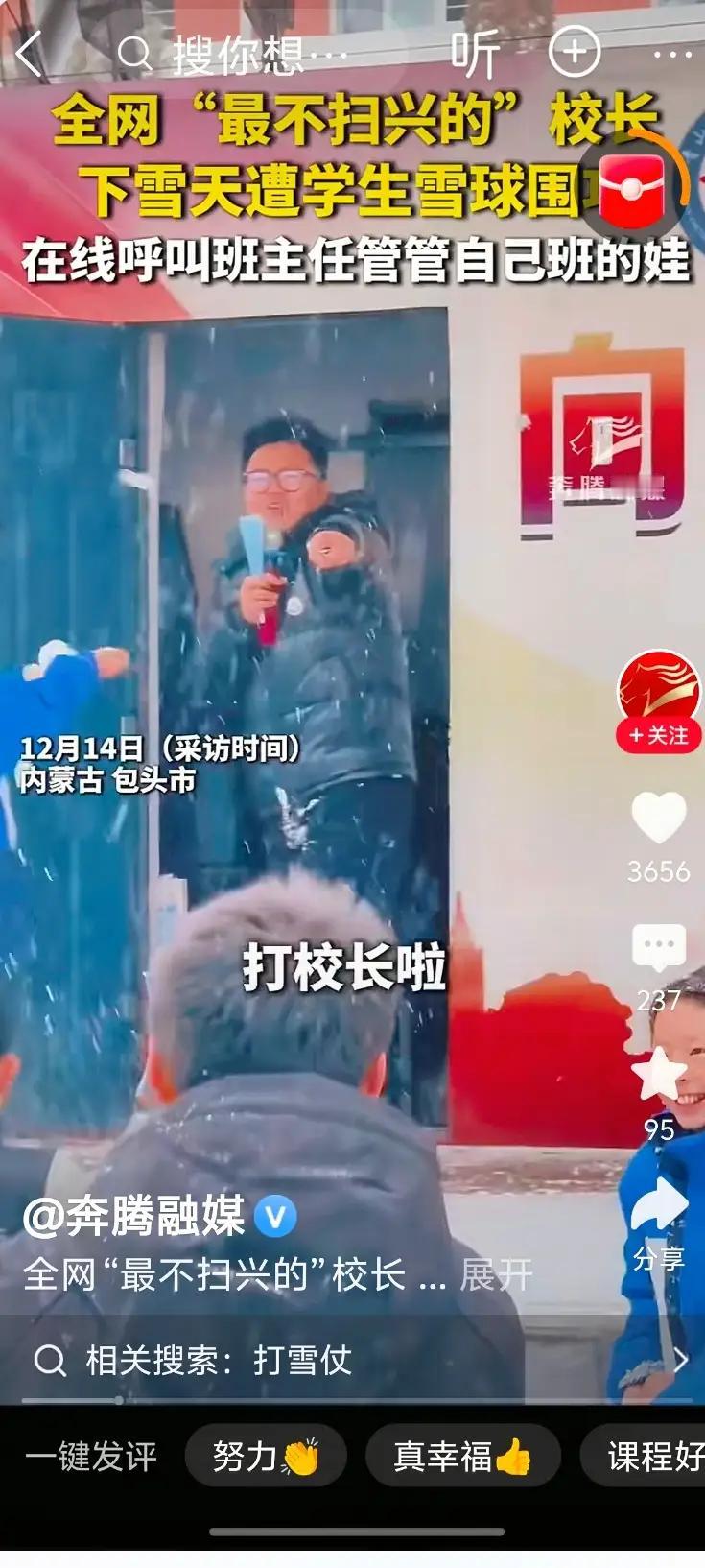 遭学生雪球围攻喊班主任救命的校长,这才是教育该有的模样。 这篇文章展现了一位温暖、接地气且充满爱心的校长形象,他用真诚和理解赢得了学生的信任与喜爱。在一个雪后的校园里,校长没有用传统的威严方式来管理学生,而是选择与孩子们一同玩雪、融入他们的快乐时光。这样的行为不仅打破了师生之间的隔阂,也传递出“快乐和尊重才是教育的核心”的理念。 文章强调:真正的权威来自于亲近与信任,而非高高在上或威严冷峻。校长的行为让学生感受到被理解和尊重,从而愿意敞开心扉,与他建立更深的关系。这种温暖的教育方式,远比单纯的纪律和题海更能激发学生的学习热情和创造力,也让校园成为一个充满温情与信任的地方。 这故事也提醒我们,教育不应只关注成绩,更应注重培养孩子的幸福感和归属感。一个有温度的校园,能让孩子在成长中留下最美好的回忆,成为他们一生的宝贵财富。 你是否也怀念自己童年中那些温馨有趣的校园趣事?欢迎在评论区分享你的故事,一起感受教育中的那些温暖瞬间!