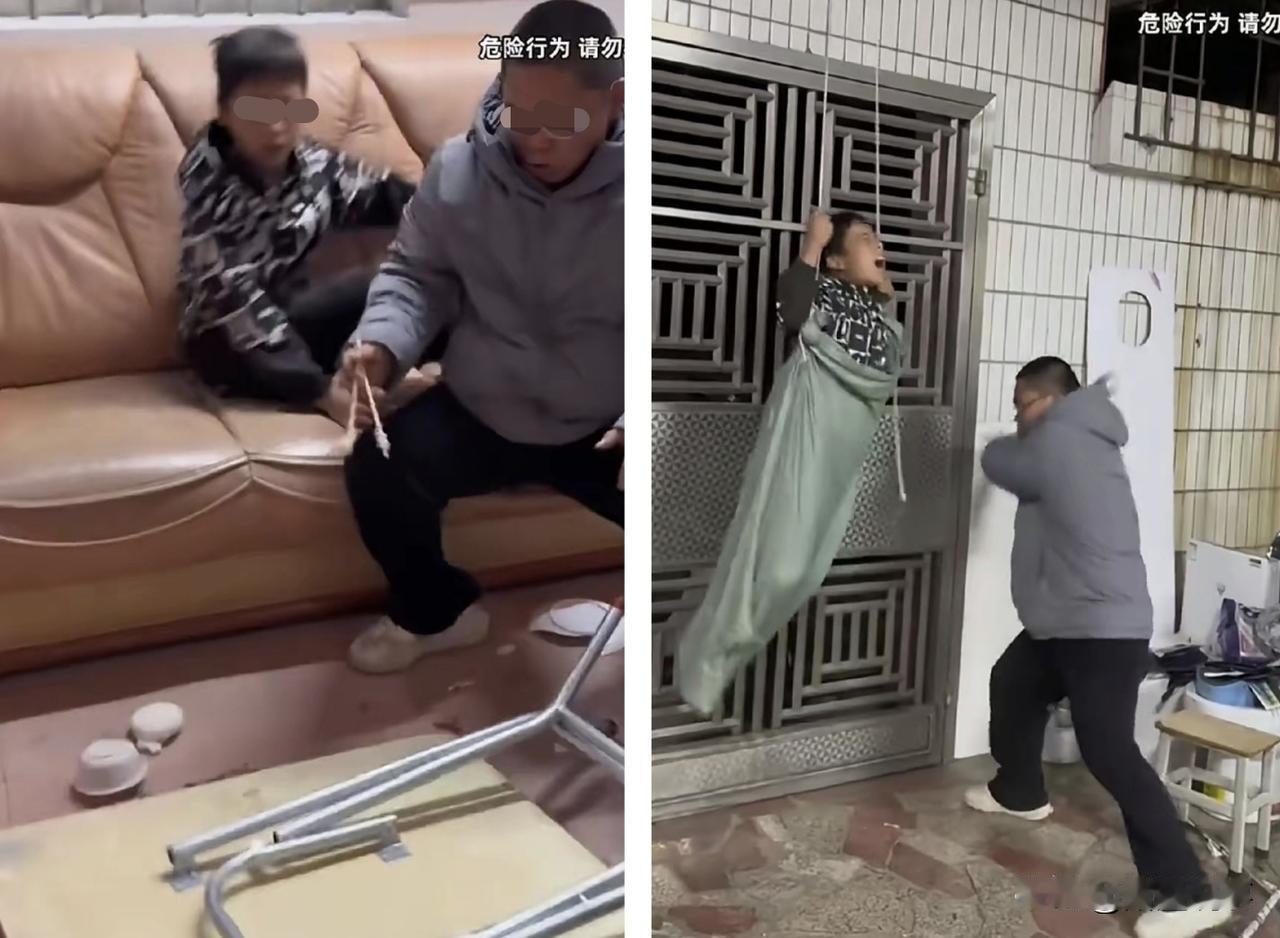 以前总听说孩子不听话就吊起来打,看到的更多却是电影电视剧情节中,大人被吊起来抽打的画面,今天突然看到广东父亲吊打儿子的这一画面,终于理解了吊打调皮孩子的真实场景,希望孩子以后能长点记性了。 孩子确实调皮,在沙发上翻跟斗,打翻了餐桌,一桌美食都没了,难怪父亲会那么生气,暴躁老爹上线,直接把儿子吊在过道上抽打,视频还被流传出来了,让广大网友们见识到了什么叫吊打,警示下调皮的孩子们。 现在的孩子都被宠坏了,家长哪里舍得打,就算父母想打,爷爷奶奶外公外婆肯定出来阻拦,所以都很难管,打不得骂不了,只能靠哄,像这位父亲能够直接吊打孩子的真的很少了,我们也只能观望了。