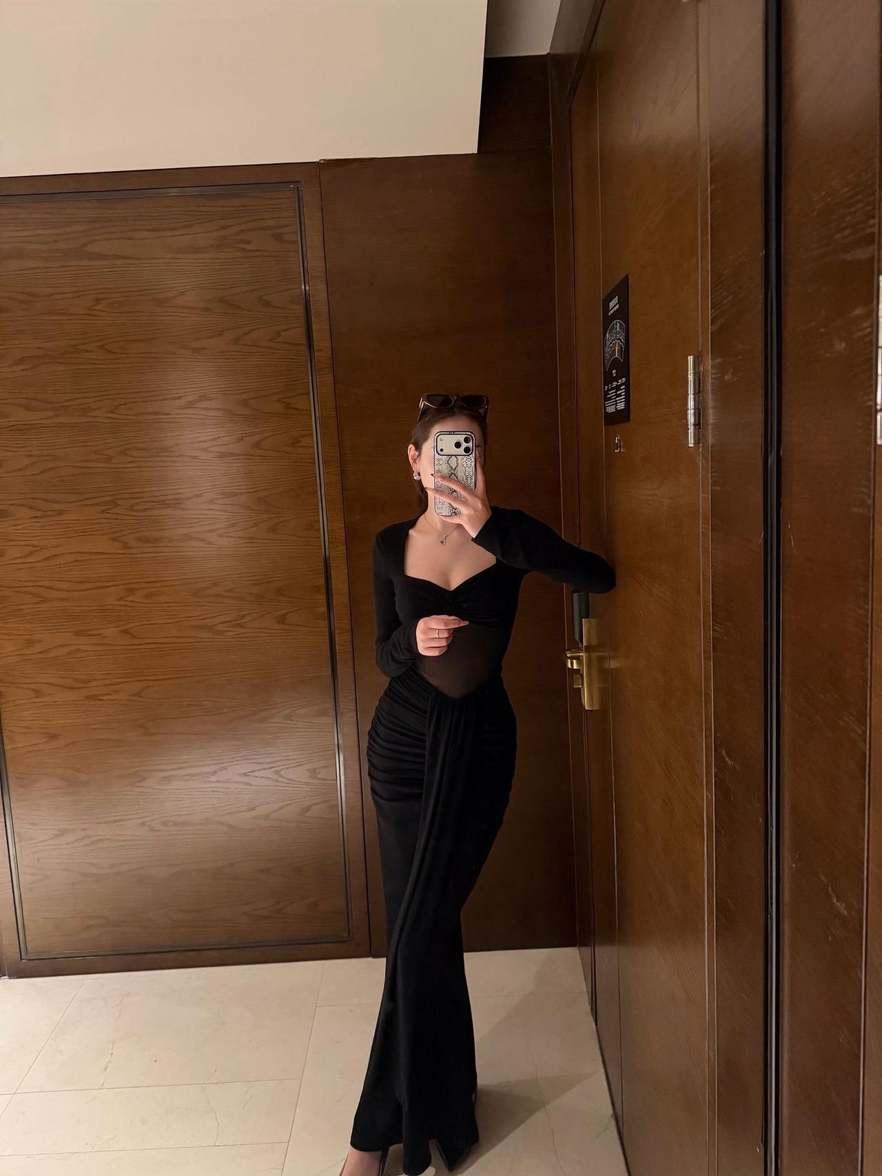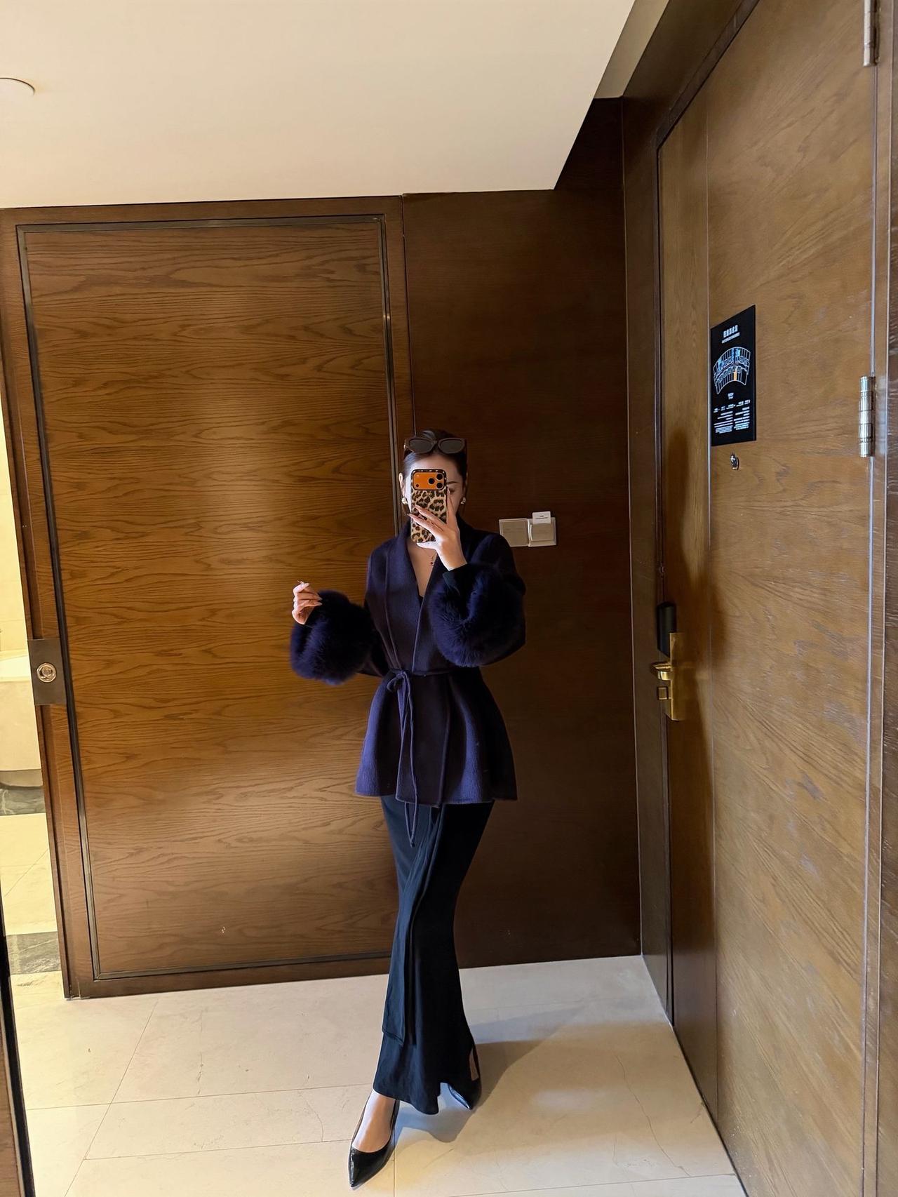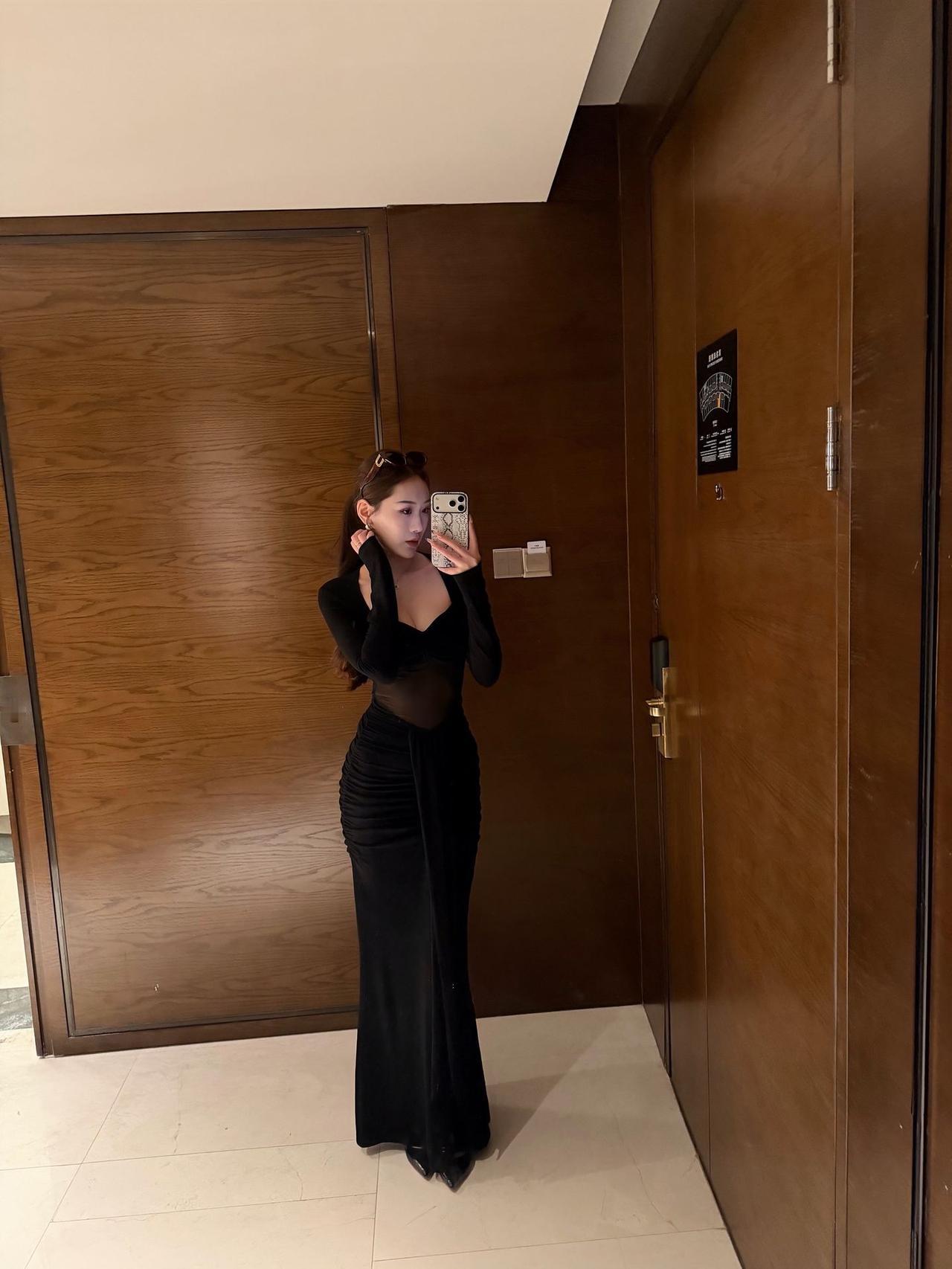 优雅蓝裙搭配,时尚手机自拍,气质满满!