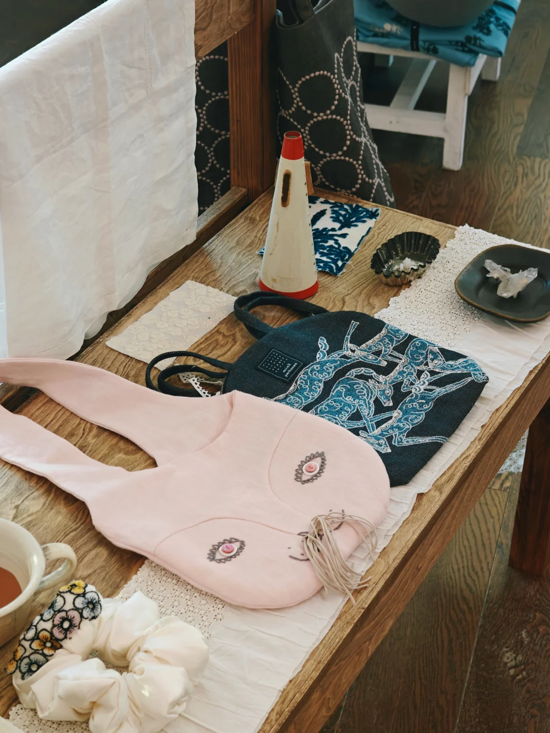 经典的tambourine图案布料,虞美人和飞鸟的抽象化图案,各种独特的手工刺绣作品,兼具北欧的简约轮廓与日式的细腻叙事,时而温暖、时而清冷,不变的是那一份想在成人世界重拾童话式的松弛与治愈的心。