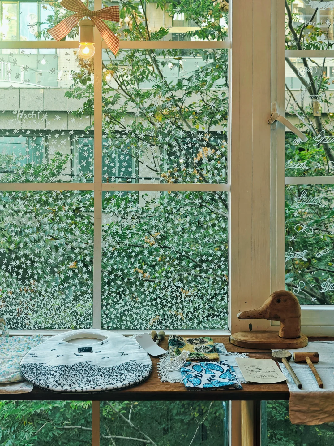 圣诞临近,店里的装饰也充满了圣诞气息,尤其是那一面美出圈的大玻璃窗,悄悄加上了雪花图案。