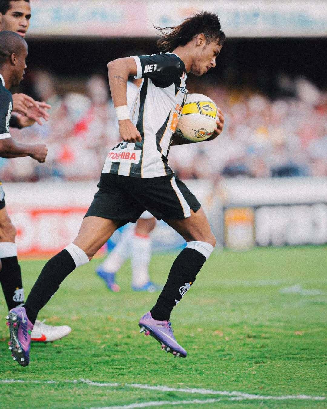 桑托斯时期的青涩内马尔——身形瘦削,盘带灵动不羁,气场张扬难挡。⚡️⚪⚫登陆欧洲、万众瞩目之前,身披那件经典黑白战袍的他,就已把后卫们戏耍得晕头转向。一代巨星的传奇,自此开篇。✨足球