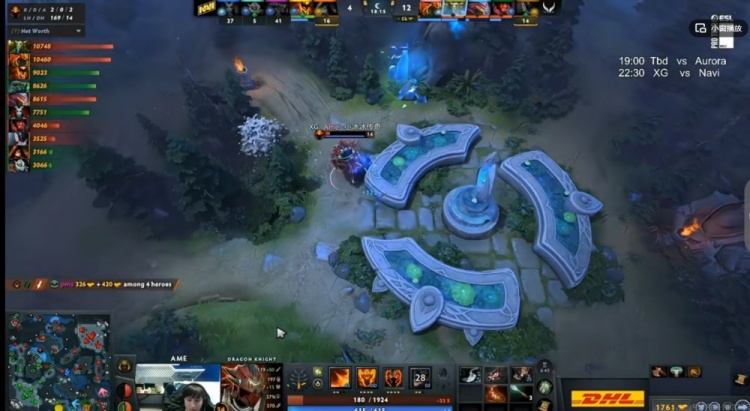 [18分钟]下路团战Ame变龙的龙骑直接动手,NTS先知支援先秒对手酱油,pma潮汐给大留人,但是gotthejuice女王几乎贴脸的一个完全空大啊!残局Fy毒狗一个关保住了残血龙骑!这波XG击杀对手四人!6K经济优势了!