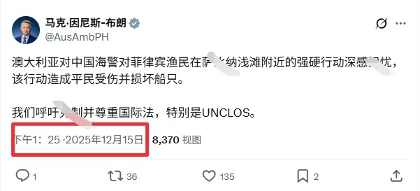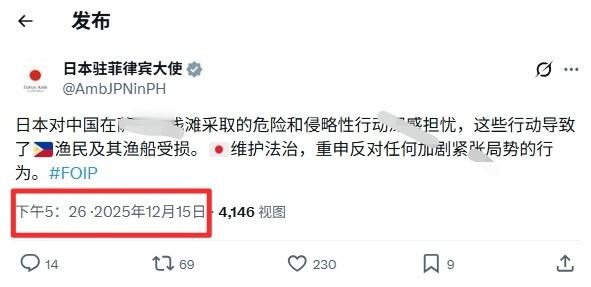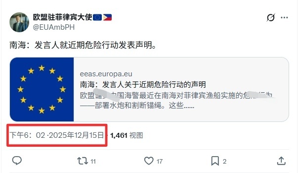 英欧加日澳等国驻菲律宾大使馆用实际行动演绎什么是“仆从国”。菲律宾海岸警卫队集结船只前往仙宾礁附近海域挑衅遭中国海警依法驱离发生在12月12号,事后,美英欧加日澳等国驻菲律宾大使馆没有在第一时间发布消息。12月14号,美国驻菲律宾大使发文为菲律宾站台,随后12月15号,英欧加日澳等国也先后发文为菲律宾站台。历次南海的冲突中也是如此,这些国家从不敢先与美国发文表态烽火问鼎计划热点观点