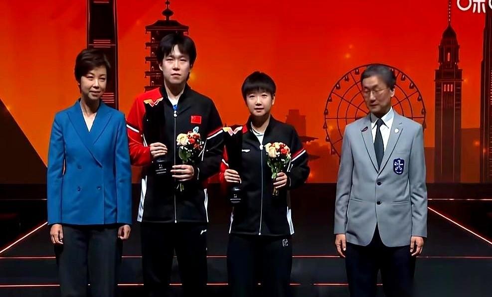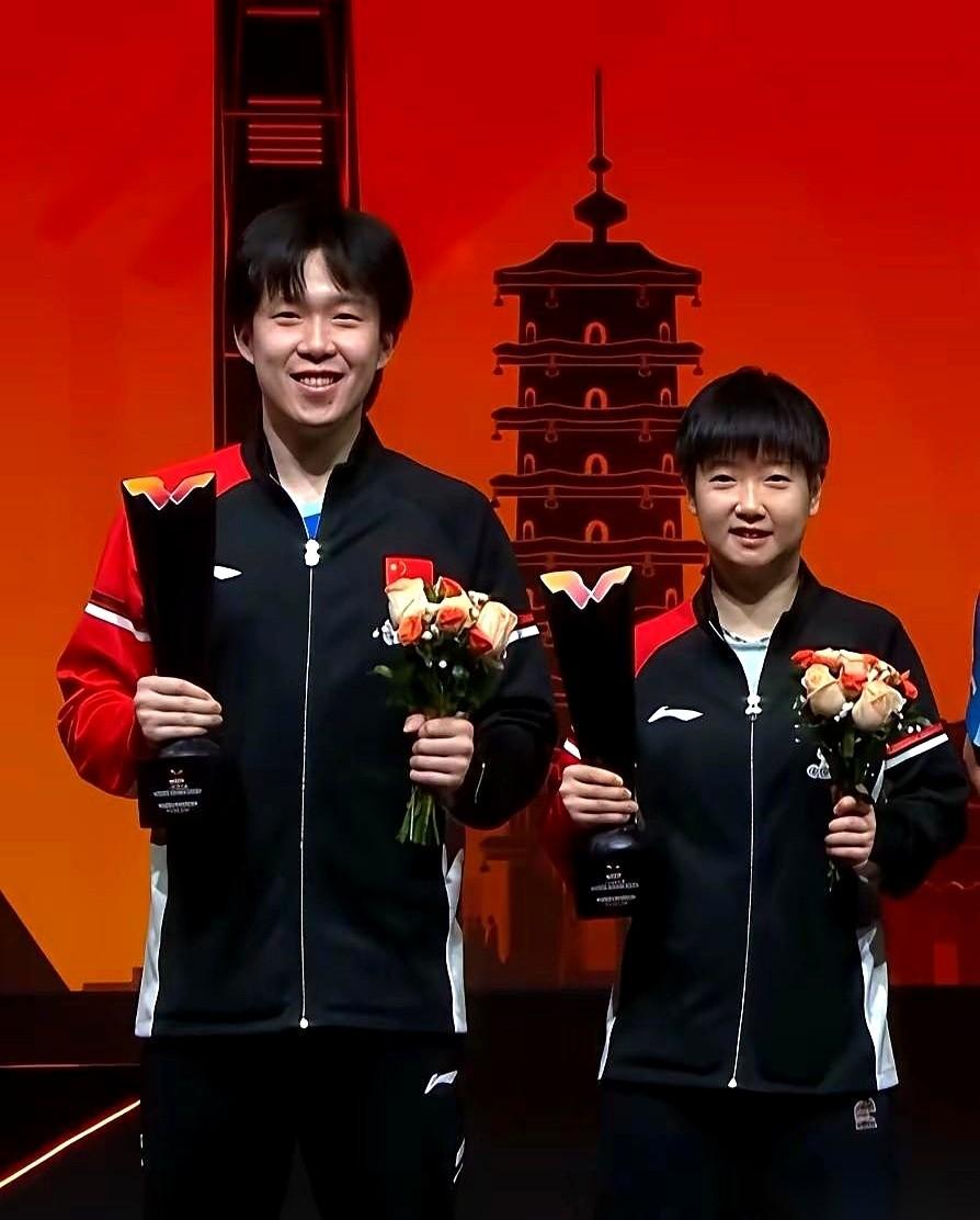 讲个笑话。 输了决赛,结果俩人站领奖台上,乐得跟什么似的。 尤其莎莎,那眼睛里冒出来的光,根本藏不住。 为啥? 抬头一看,好家伙,颁奖的,是“大魔王”张怡宁。 那一瞬间,什么输赢,什么金牌,什么身体的疲惫和伤痛,估计全都飞到九霄云外去了。 这哪是领奖啊,这分明是小粉丝见面会开到了决赛现场。 是你的神,亲手给你戴上勋章,告诉你“嘿,丫头,我看好你”。 好多人还在那儿掰扯,说哎呀怎么就输了,状态不好吧啦吧啦…… 格局小了,真的。 人家“莎头”什么冠军没拿过?混双早都大满贯了,还在乎这一块两块金牌的得失? 对他们这种级别的运动员来说,有些东西,比金牌本身更重。 是一种认可,是一种传承。 是你追着光跑了那么多年,终于有一天,光转过身来,拥抱了你。 一块银牌,换来大魔王亲手加冕。 这笔买卖,怎么算,都赚翻了。
