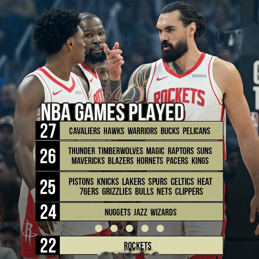火箭队本赛季只打了22场比赛。有五支球队打了多达27场比赛。从本周日开始,火箭队将在全明星赛前的54 天内进行29场比赛,其中包括6组背靠背比赛。休斯顿火箭NBA吐槽大会新赛季篮不住
