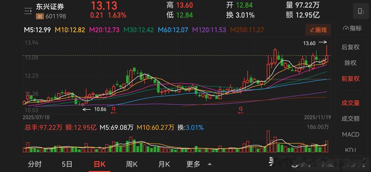 券商里面当前的三个特例:中银证券、东兴证券、中信建投。今天大盘走的那么绿,这三个仍然是红的,这就非常有意思。 中信建投连续多日拉阳线沿着一个斜度小幅上升,这本身就很奇怪;相比来说,中银证券儿最近的走势更加扎实,底部放量整理,而东兴证券是攻击形态,要量有量,要位置要位置,这背后都是资金的博弈。 当我们从一个中银证券开始观察到3个以上强势品种的时候,说明这个板块逐渐的在夯实上涨的基础,后续的板块行情就有了多种可能性。