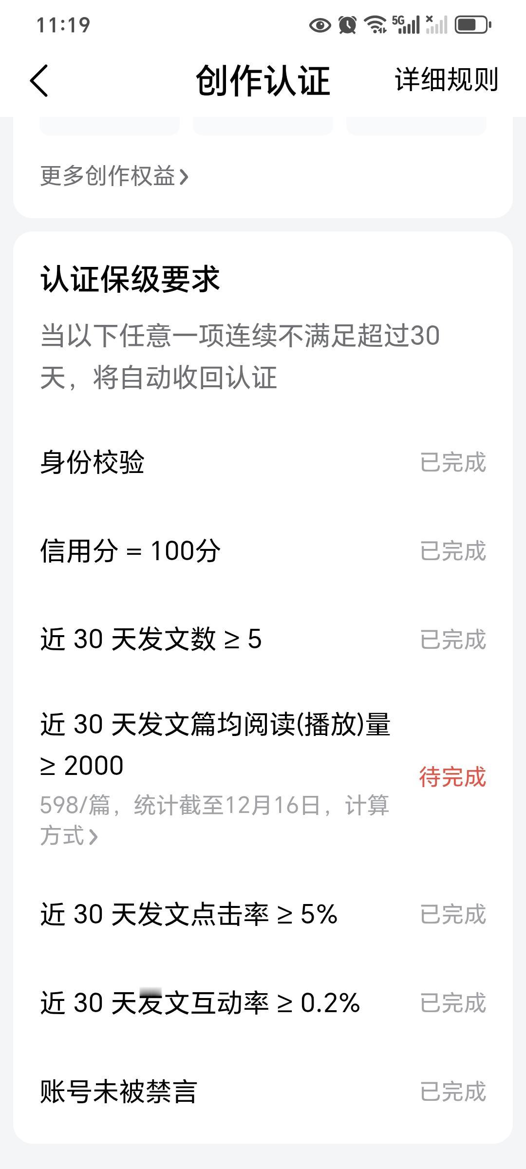 感觉自己的“新锐创作者”头衔要保不住了。这个头衔有七项要求,其中一条是关于发文阅读量,要求每篇的平均阅读量要达到2000以上。我觉得这条ZUI难达标。 上周我偶然关注到自己的阅读量,连续几天大概都在1500左右,结果这周居然掉到了500多,离2000的均阅读量差距越来越大。 如果没有爆款,这平均阅读量很难提高上去了。 原本“才思”就枯竭,现在更不知道该写什么,我感觉写啥都没有流量。 我的粉丝才3000多,本来就少。不像那些万粉的作者,随便发篇内容都有会有不错的阅读量。 我发文频率不高,一般每天发1-2篇微头条,偶尔写篇文章。新锐创作者要求一个月内发文不低于5篇,是不是减少发文量会增加均阅读量? 大家有好办法吗?