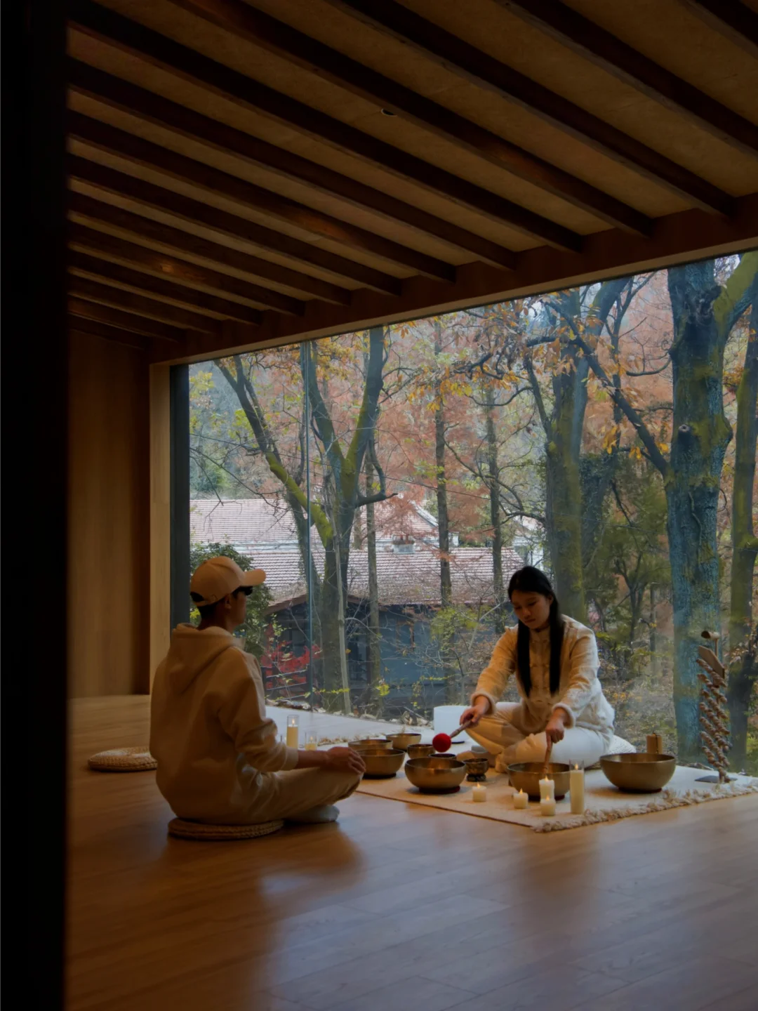 住进森林里 过几天推窗即画的山居日子 一直觉得 真正的度假不是奔波于景点 而是寻一处秘境 让自己彻底松下来 「樾和林泉」 便是这样的存在 隐于山野 被森林温柔环抱 每个房间都像长在自然里 晨起是薄雾漫过林梢 傍晚是霞光染红树尖 特别喜欢这里的诵钵体验 空灵的声音在山谷间回荡 仿佛能抚平所有的纷扰 泡一次森林私汤 让暖汤洗去疲惫 围一场炉火夜话 在火光与星光中找回久违的宁静 秋日来这里 恰到好处 不冷不热 有风有叶 在这里,时间不再是数字 是光影的移动,是叶落的频率 是自己与自然同频呼吸的节奏