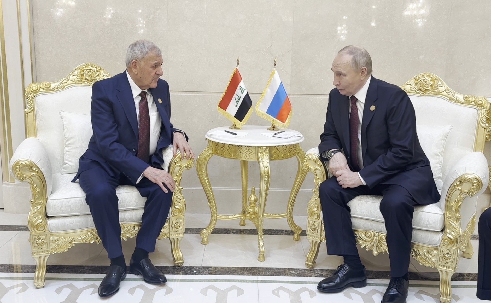 瓦洛佳小朋友 与伊拉克总统阿卜杜勒·拉蒂夫·拉希德举行会晤在阿什哈巴德,弗拉基米尔·普京与伊拉克共和国总统阿卜杜勒·拉蒂夫·拉希德举行了会晤。2025年12月12日 18:10阿什哈巴德