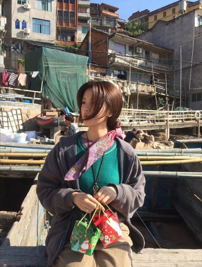 杨超越居然把这么丑的衣服穿出了一种古着感 ,果然女明星披麻袋都好看