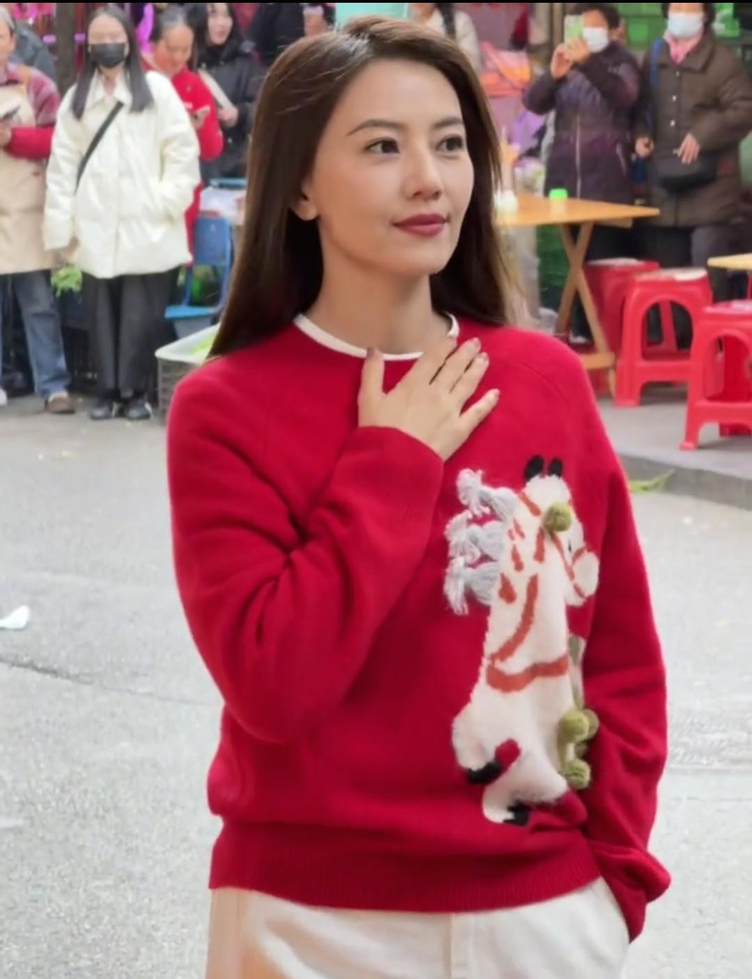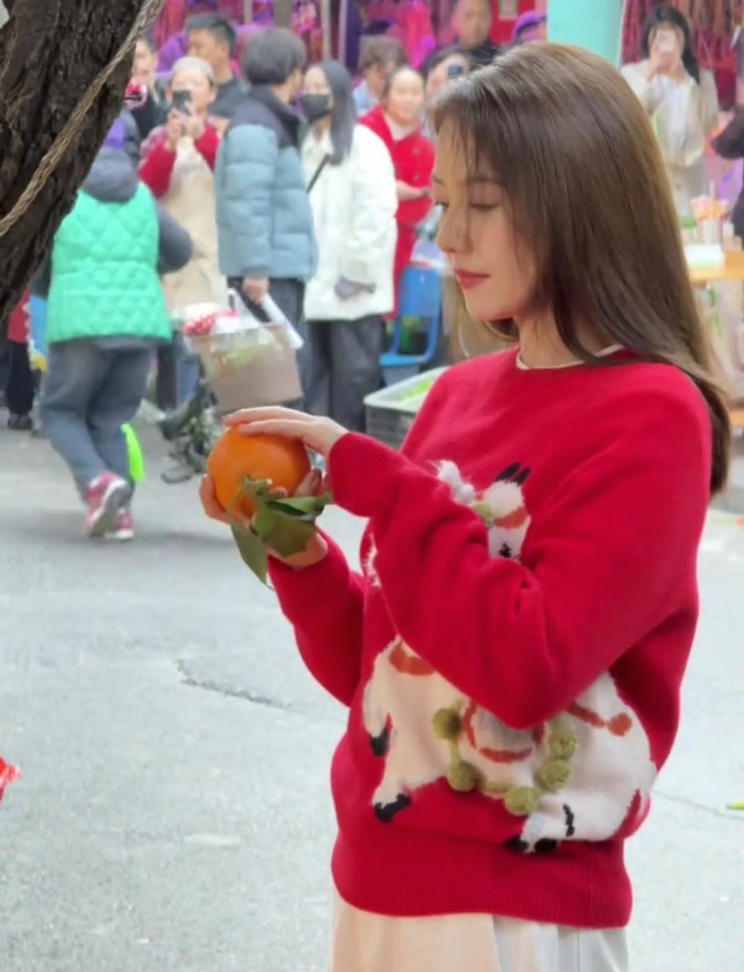 这两天,高圆圆现身四川街头参加拍摄活动,简约时尚的穿搭让人羡慕。 高圆圆穿着红色毛衣如,外搭黑色羽绒服略显鲜艳与沉稳,白色休闲裤更添几分清爽,她手捧一颗浑圆橙子,让整条街都有了亮堂的色彩。 高圆圆没有华服浓妆,显得很有“松弛,羽绒服随意敞开,笑容自然温柔,美在无意间,这份毫不刻意的从容,让街景画面看起来也特别温馨,为冬日送上了一份祝福。
