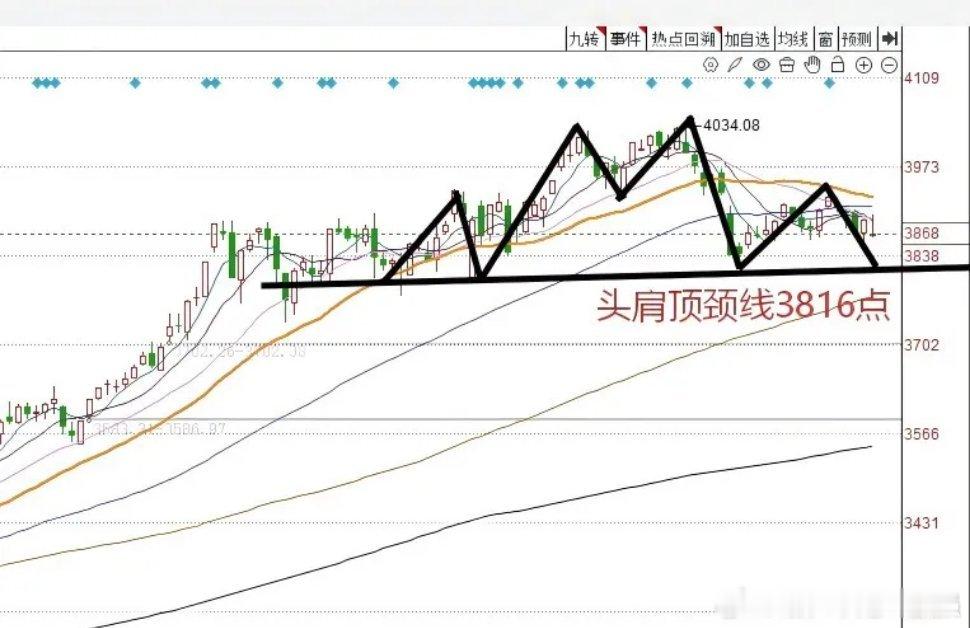 午后银行板块明显调整,指数反弹受到拖累,接下来怎么看?现在是下午的2:22,截至目前为止,国有大型银行板块跌0.88%,银行板块跌0.63%证券板块跌0.55%午后上证指数的反弹还明显受到了金融权重板块调整的影响。那么今天到底怎么看呢?市场全天震荡走低,没有看到任何像样的反弹,是不是意味着明天还要继续大跌呢?我个人的观点是,当前上证指数已经跌到3816点,也就是近两周我和大家讲到的A股头肩顶的颈线位置。我认为这个位置是有强支撑的,或者至少说短线会有一些反弹的动作。所以我并不担心明天市场会走得更差,相反,我认为明天市场应该会出现止跌的信号。如果今天一直杀跌到尾盘 ,那么也没有关系,因为在我的预判当中,明天出十字星的可能性较大。如果真的出十字星的话,指数止跌的概率就更大了。