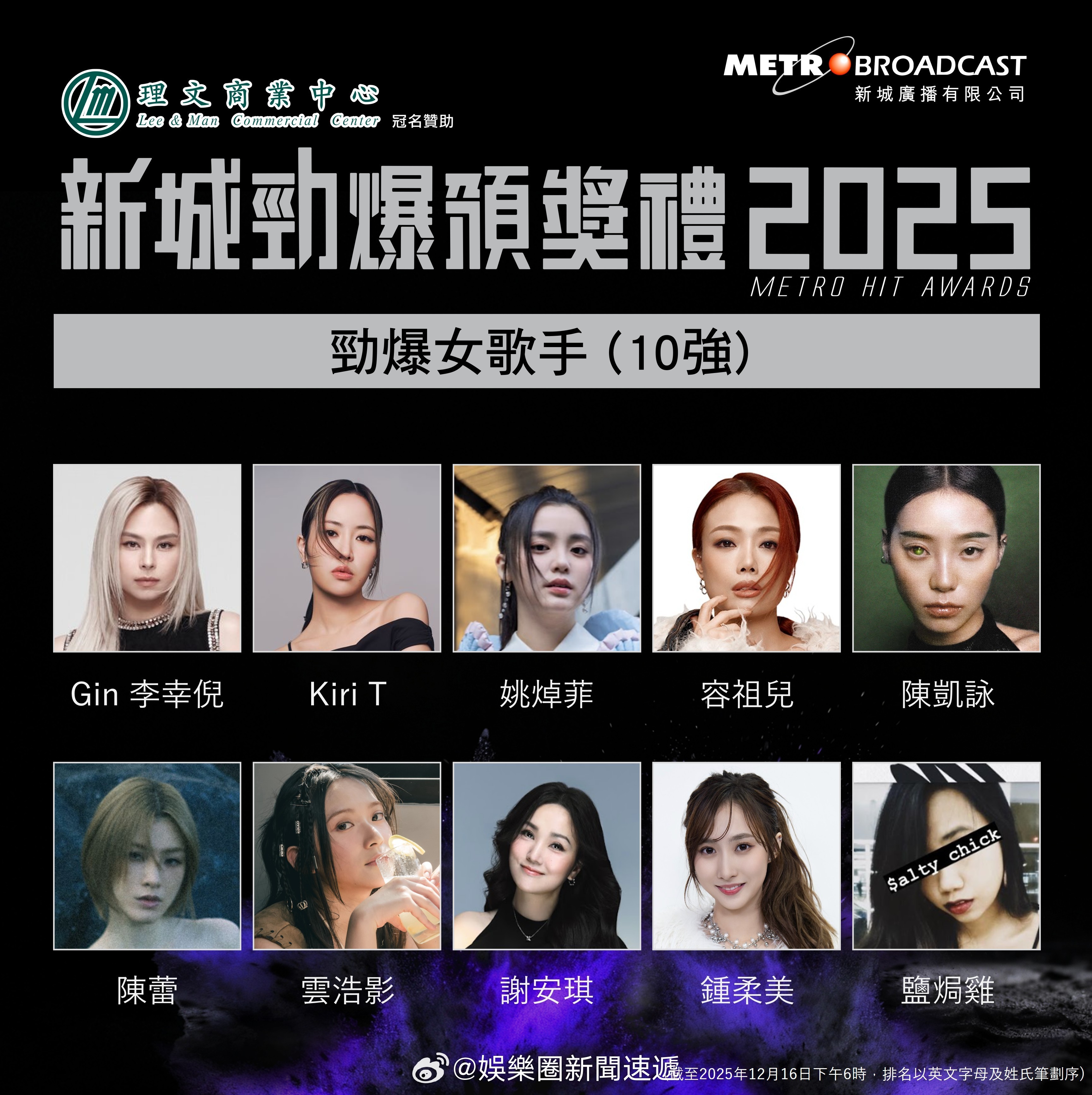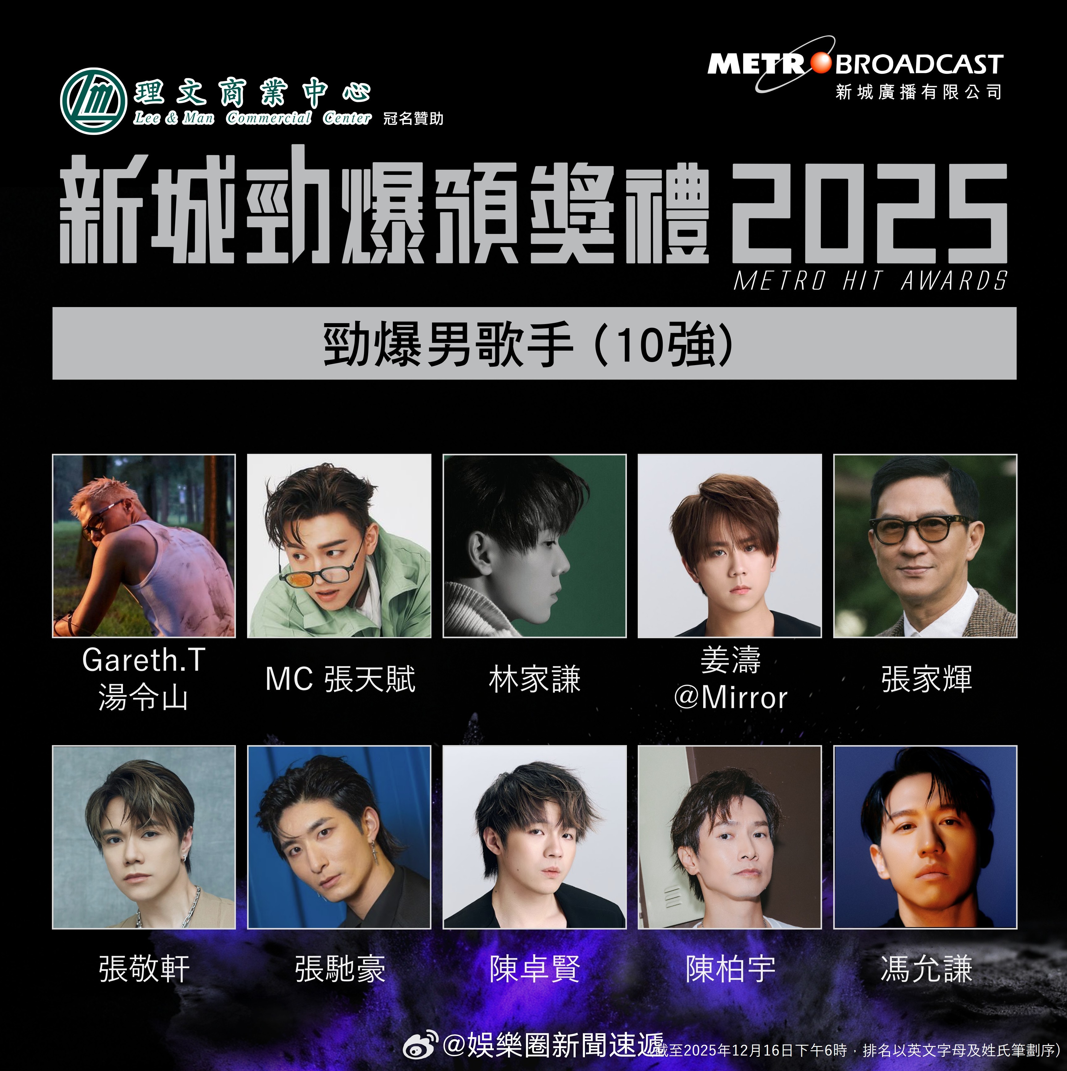 「入選10強勁爆歌手…激戰新世代 姚焯菲挑戰一代天后 … (大公文匯全媒體 特約記者 陳惠芳)《新城勁爆頒獎禮2025》將於12月27日舉行,隨着網上投票進入倒數階段,大會今日(16日)下午公布「勁爆男歌手」及「勁爆女歌手」兩大重點獎項的10強最新走勢,戰況相當激烈。在「勁爆男歌手」方面,成功躋身10強的歌手包括:Gareth.T(汤令山 )、、、姜涛 、、、及。在「勁爆男歌手」10強名單中,影帝張家輝入圍最為觸目,其餘席位則由樂壇中流砥柱與新生代猛將包辦,包括上屆大熱張敬軒、唱作俱佳的林家謙、人氣男團MIRROR成員姜濤與陳卓賢、以及近年表現亮眼的MC張天賦、Gareth.T、張馳豪及陳柏宇,由此可見競爭亦相當激烈..」入內看全文:网页链接 香港