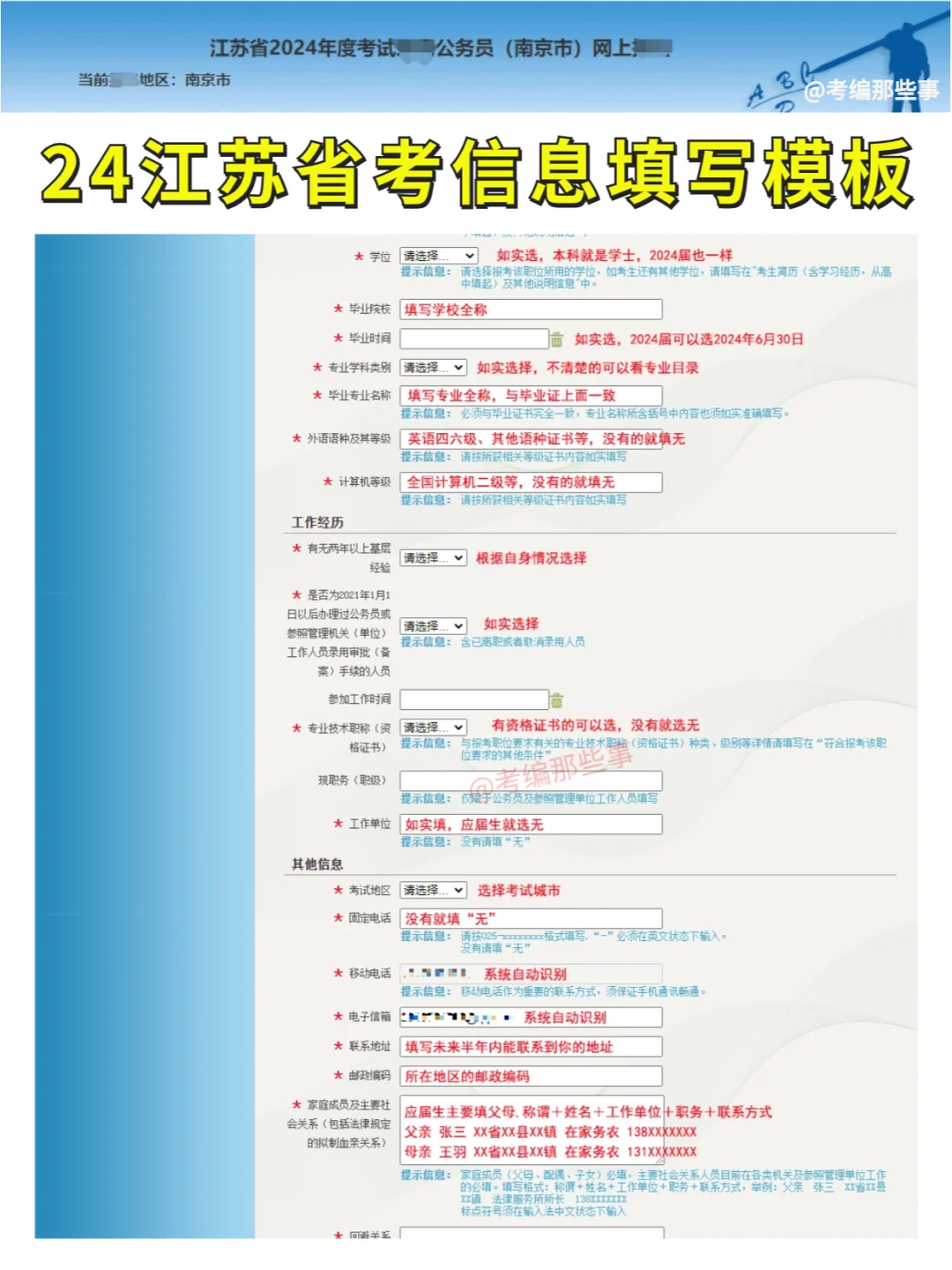 应届生快看!!2024江苏省考信息填写模板来啦~