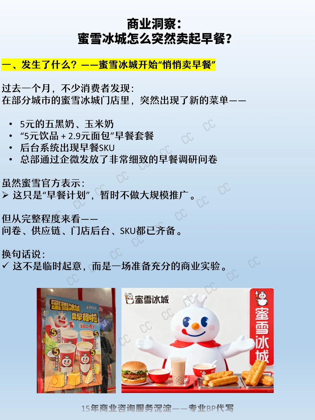 商业洞察:蜜雪冰城怎么突然卖起早餐?